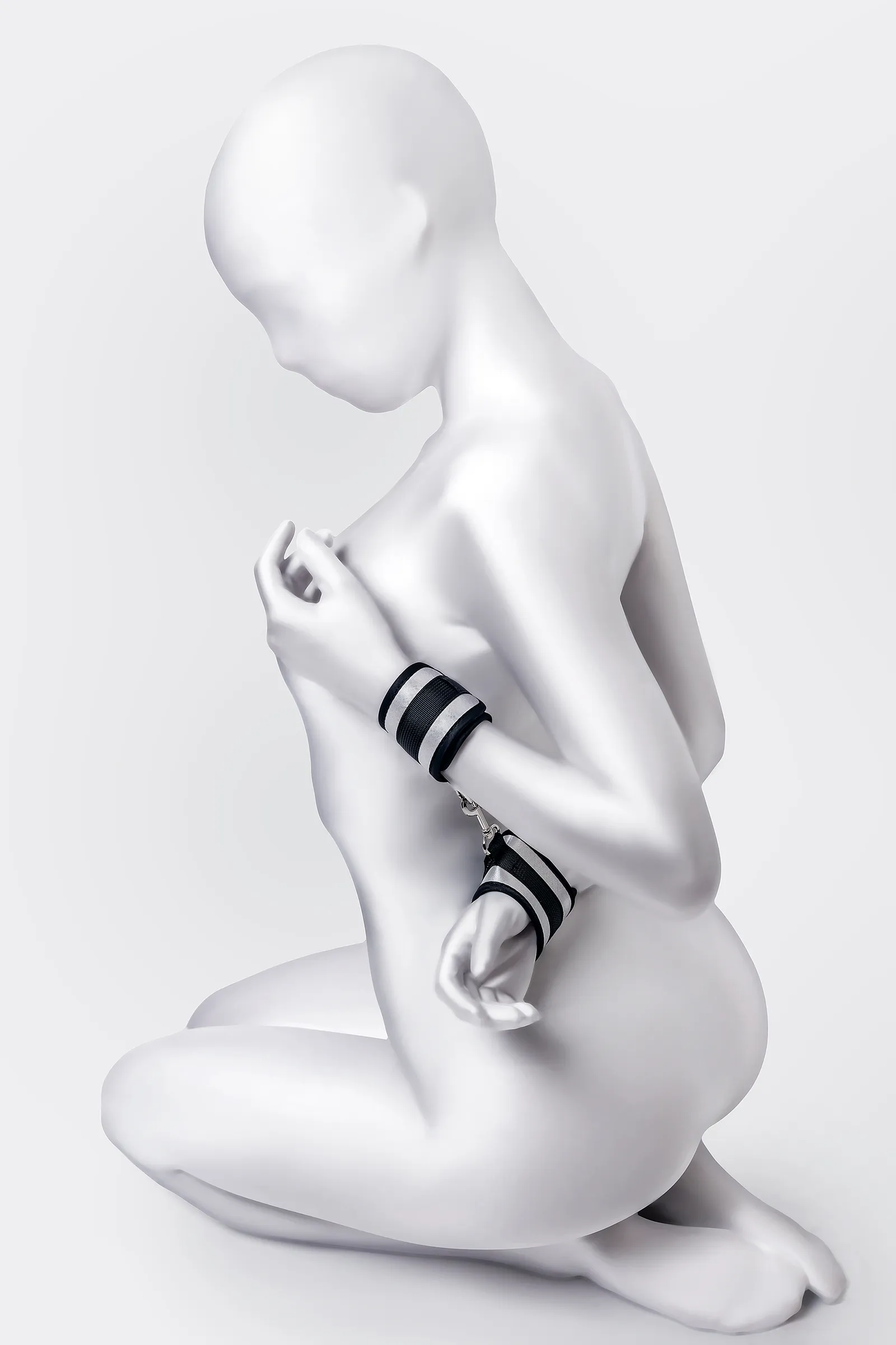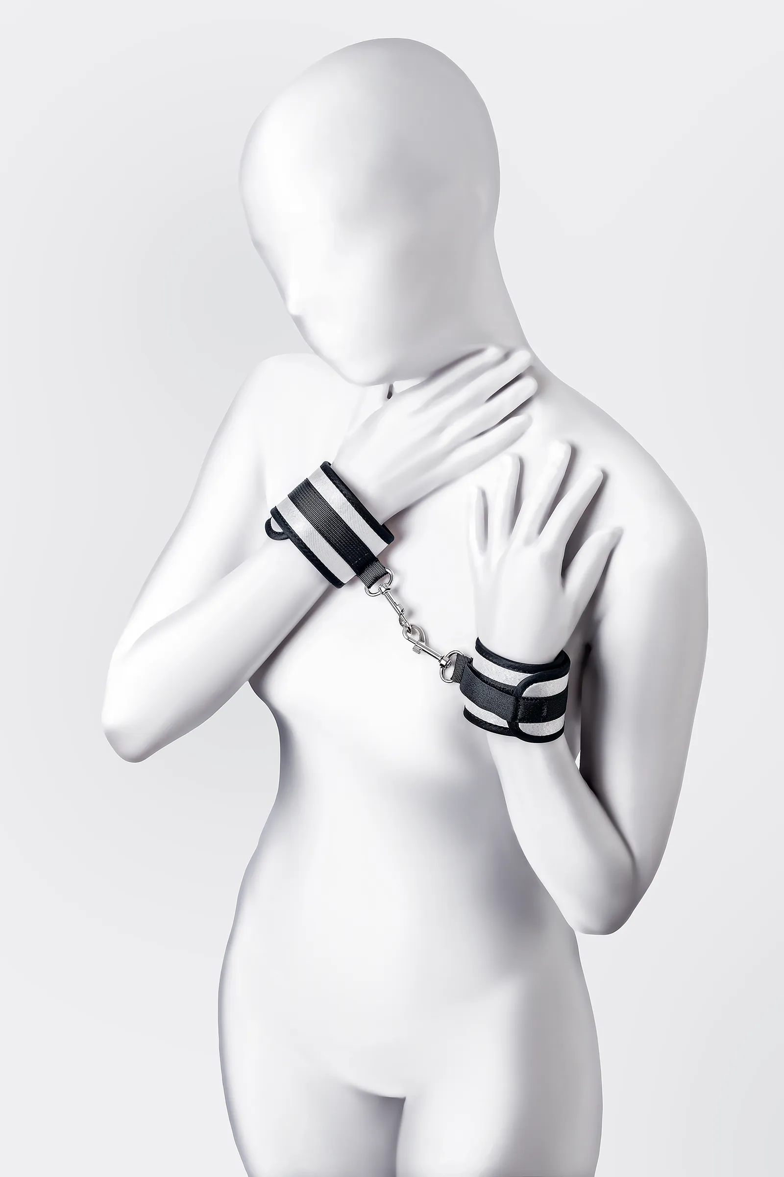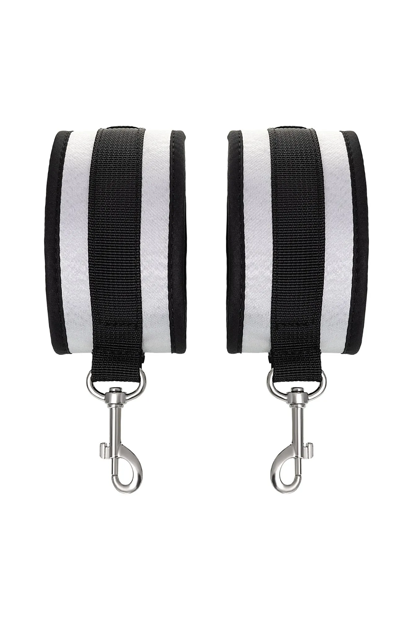 Наручники — классический предмет для игры в подчинение, обязательный для начинающих и опытных поклонников БДСМ. Блестящий во всех смыслах аксессуар для ограничения свободы: сатиновый материал поблескивает, когда на него падает свет. Необычное сочетание серебристого и черного, совсем нехарактерное для классического исполнения аксессуаров в стиле БДСМ, придает изюминку и новизну. Подчиненный с таким аксессуаром выглядит неотразимым. Застежка велкро позволяет зафиксировать руки любого размера. Между собой наручники скрепляются карабинами, практически не оставляя свободы действий. Никакого послабления, только полное подчинение своему Доминанту, где бы ни были зафиксированы руки: впереди или за спиной. Используйте дополнительно цепочку для расширенных возможностей фиксации положения рук. Начните игру в подчинение с этим аксессуаром, и вы поймете, как развивать свою чувственность с помощью ограничения свободы одного из партнеров. Дополните комплект аксессуарами — ошейником, кляпом, оковами и продемонстрируйте что значит грубое обращение и полный контроль над свободой. Материал: полиэстер, полипропилен Цвет: серебристо-черный Длина: 23,5 см Ширина: 5,5 см Длина сцепки: 8 см
