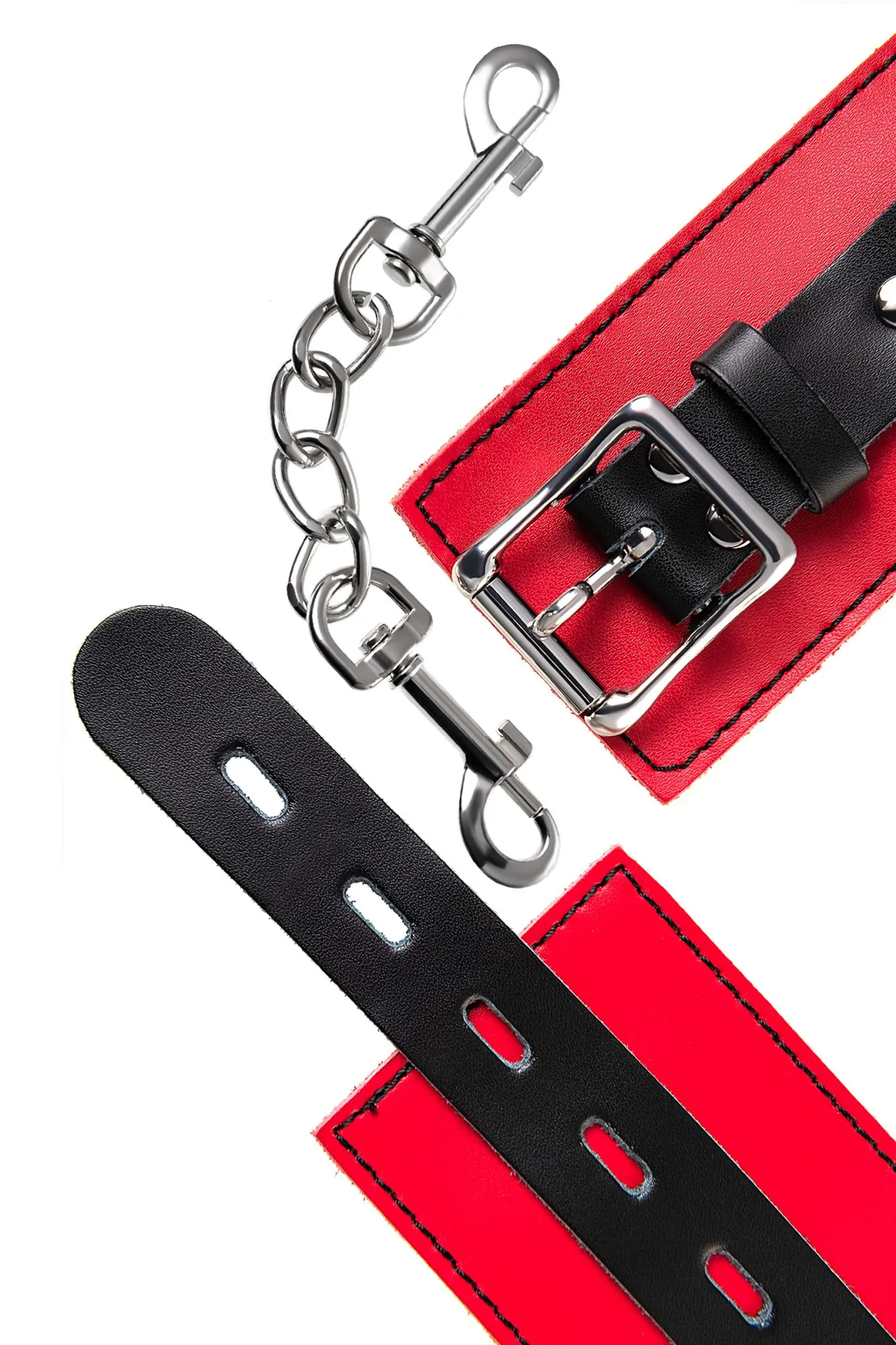 Наручники Наручники - волнующий воображение аксессуар, ведь это способ зафиксировать руки партнера и получить полный доступ к его телу. Но не забудьте про стоп-слово. Наручники из мягкой натуральной кожи сочетают в себе элементы, возбуждающие страсть и фантазию: красный и черный цвета и отделка металлическими элементами. В них будет комфортно подчиняться и ощущать ограничение свободы действий. Не натирают и имеют надежную степень фиксации. Размер легко регулируется металлической пряжкой. Эта пара - отличный вариант для начинающих в БДСМ-играх. Так почему бы не открыть для себя что-то новое? Длина наручников 23 см Ширина наручников 6 см Длина сцепки 15,5 см Материал: кожа, металл В фотосессии на модели использованы пэстис Theatre 705006