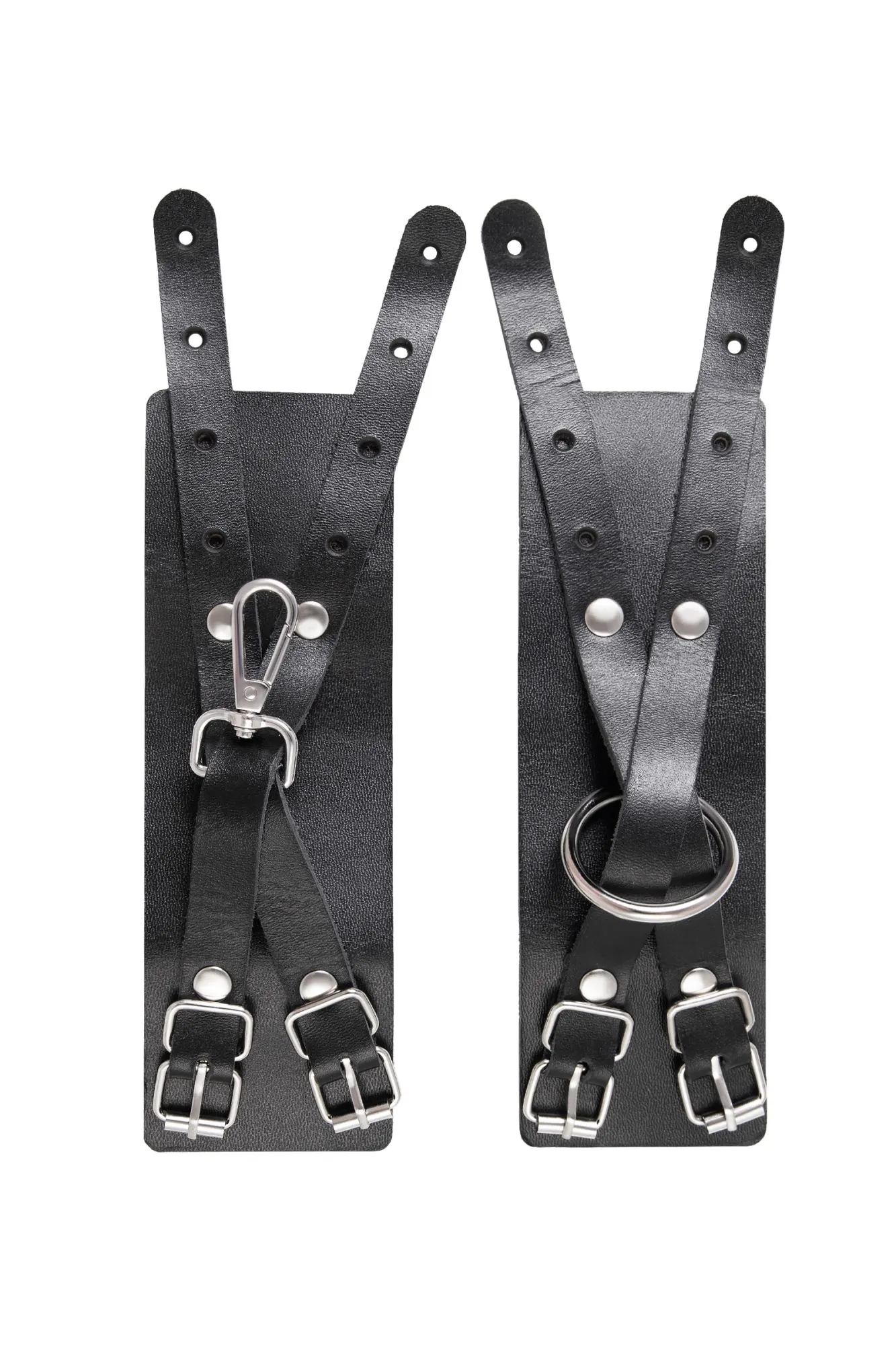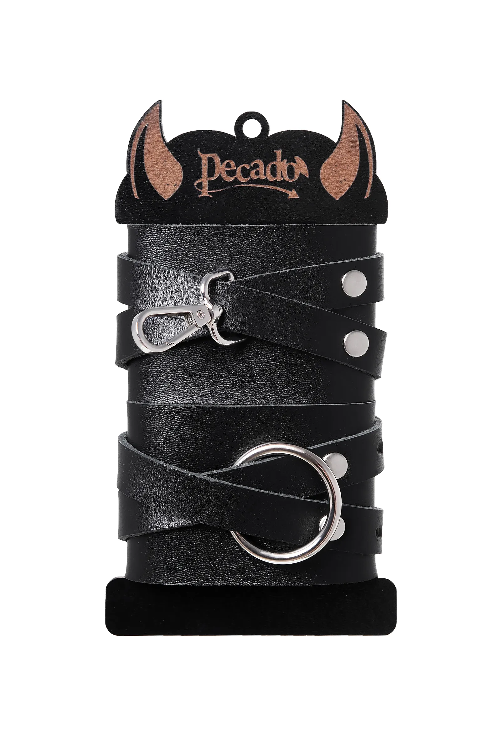 Наручники с двумя перекрестными ремешками от Pecado не оставят равнодушными любителей властвовать и подчиняться. Черные, прочные, из натуральной и экологичной кожи – они созданы для того, чтобы наслаждаться ролевыми играми. Материал наручников обладает хорошей износостойкостью. Он плотный, не тянется и не меняет форму. Надежно фиксируется с помощью качественной, стальной фурнитуры. Не расстегивается при активном использовании. Обе манжеты обладают разным дизайном. Главное отличие в металлических деталях: на одном наручнике большое кольцо, на другом – карабин. При желании атрибут возможно дополнить другими аксессуарами. Подходит и мужчинам, и женщинам. Благодаря 4-м отверстиям на ремешках, можно подобрать необходимый и комфортный обхват. ● 100% натуральная кожа. ● Ручная работа. ● Износостойкий, тактильно приятный материал. ● Надежная высококачественная фурнитура. ● Универсальный размер. ● Длина манжет – 18 см, ширина манжет - 6 см, длина сцепки – 7,5 см.