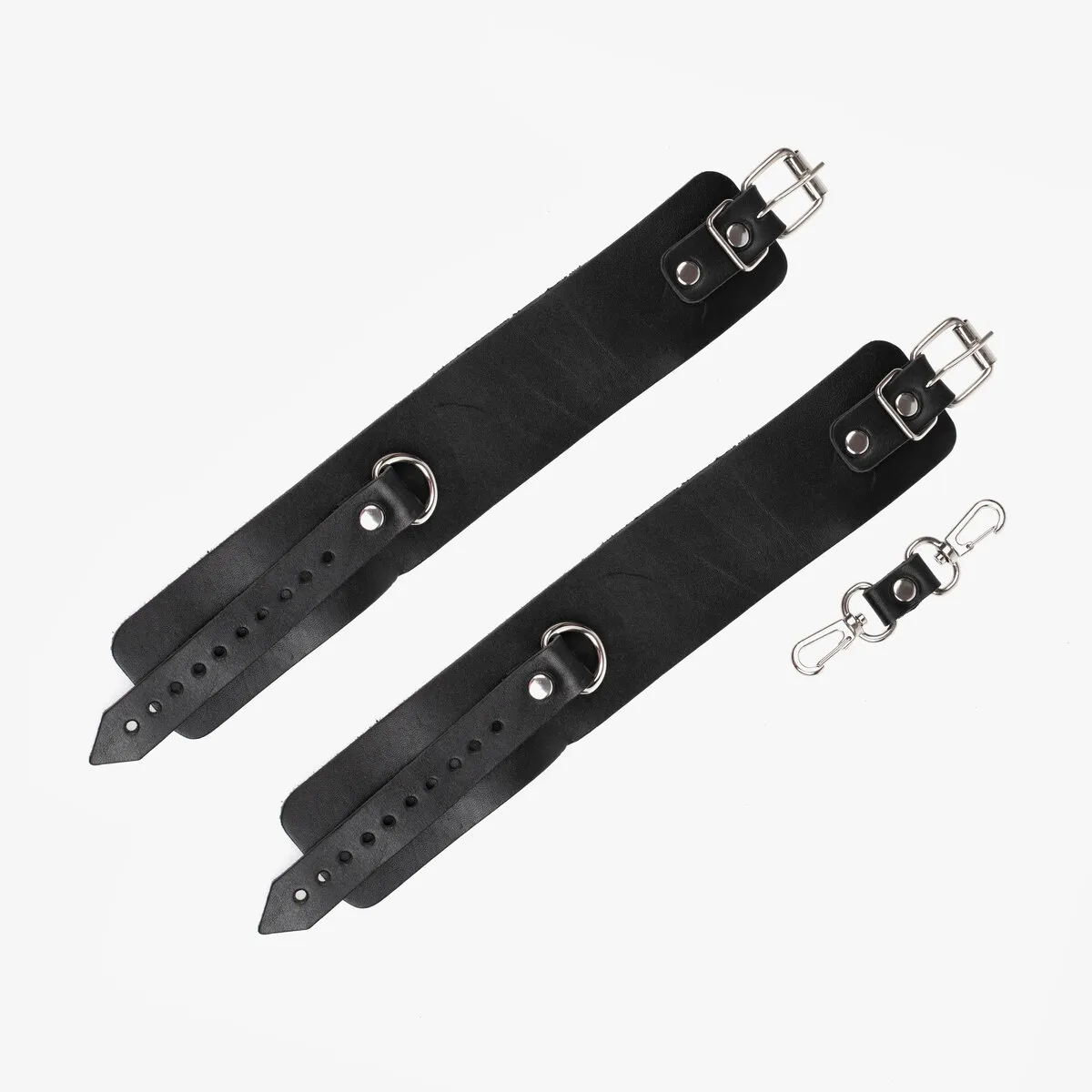 Теперь Вы можете быть уверены, что Ваш пленник не сбежит от Вас, если Вы обездвижите его с помощью этого БДСМ-аксессуара. Черные наножники декорированы металлическими клепками и соединены между собой при помощи цепочки. Ремешки с пряжками позволяют отрегулировать диаметр оков. Привнесите в Ваши интимные отношения немного разнообразия с помощью этого приспособления для сексуальных утех.