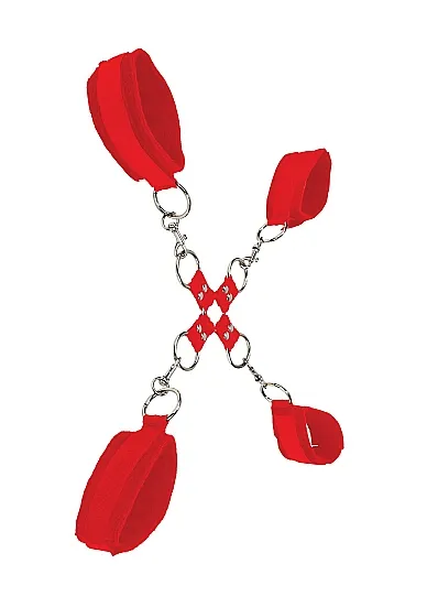 Наручники (оковы, фиксаторы) для рук и ног Velcro Hand and Leg Cuffs – универсальные оковы для рук и ног с крестообразным соединением для обездвиживания партнера при эротических ролевых играх и практиках БДСМ. Благодаря удобным липучкам можно быстро закрепить оковы как на лодыжках, так и на запястьях, оптимально подобрав размер. Каждый манжет оснащен металлическим кольцом, к которому с помощью универсального карабина крепятся четыре коротких ремешка, соединенных вместе на центральном кольце.