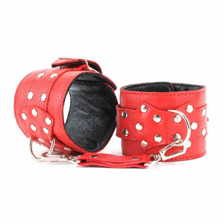 Оковы из красной кожи можно использовать для рук или ног. Верхний слой мягкий кожаный, нижний – велюр. Чтобы секс-наручники 56001ars не натирали, слои между собой проклеены мягкой прокладкой. Прочные оковы из красной кожи надежно сцеплены металлической цепью, с внешней стороны украшены фурнитурой – кнопками. Секс-наручники надежно фиксируют руки за счет ремней, партнерша будет только Вашей! Характеристики оковы из красной кожи 56005ars: цвет – красный, материал – кожа, металл, длина – 35 см, диаметр – 5 см, длина цепочки – 15 см, производитель – BDSM Арсенал (Россия).