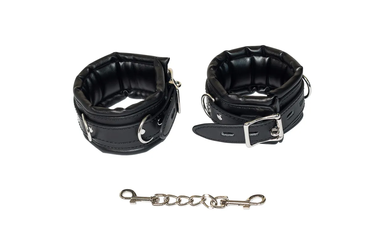 Обезоружить партнера и показать ему, кто сегодня руководит сценарием, можно с помощью одного простого приспособления - поножей. Натуральная ПВХ-материал нежно захватывает ногу в приятный плен, подчеркивая изысканность и пикантность ситуации, и дарит совершенно новые ощущения, связанные с невозможностью полноценно двигаться. Если же жертвой сегодня будете не Вы, то сможете вдоволь насладиться и поиграть с каждой частью тела своего пленника. Поножи очень прочные, поэтому Вы можете прикрепить их к любому элементу мебели, возле которого будет разгораться ваша страстная игра. Общая длина: 40 см, Ширина: 6 см.