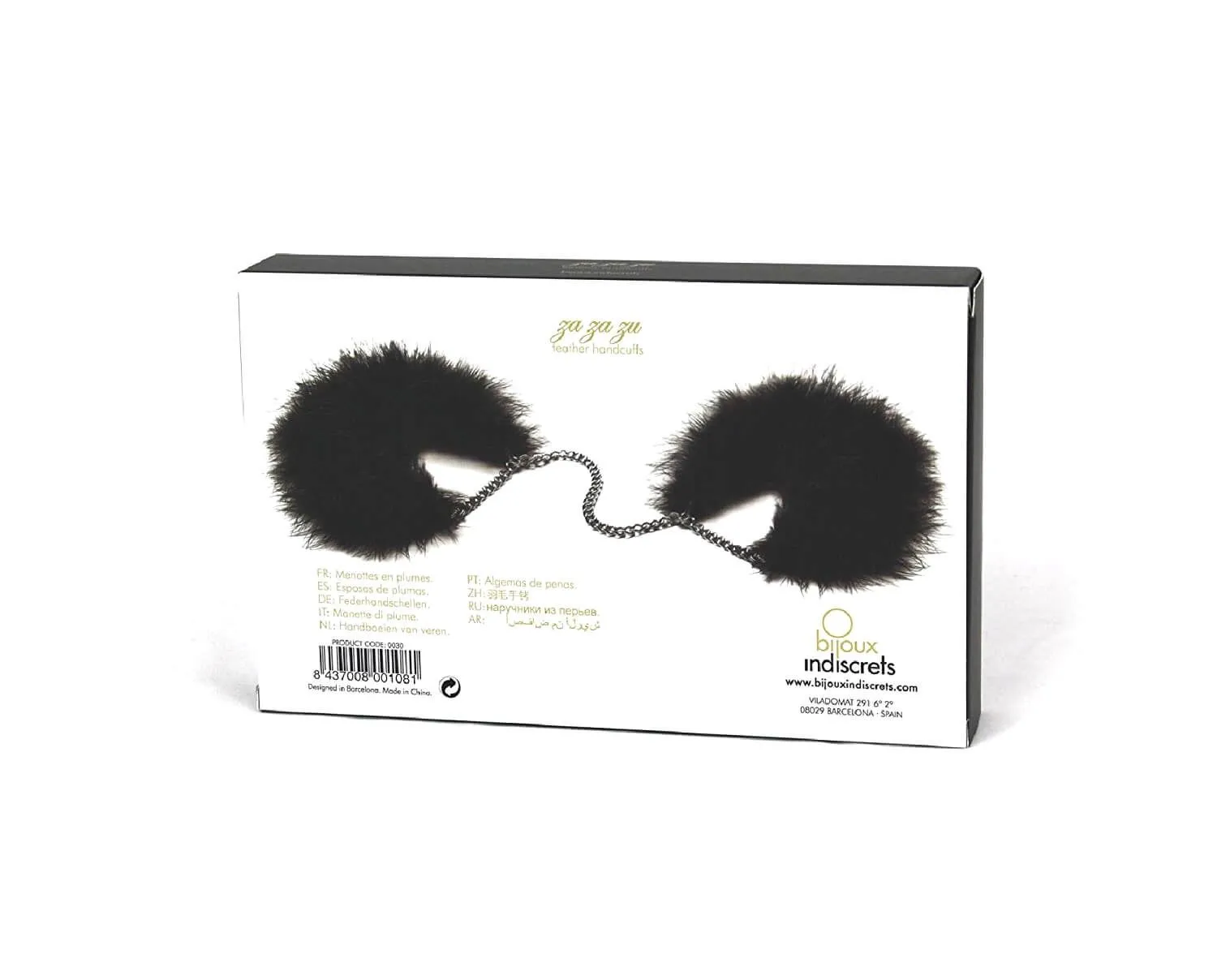 Очаровательные наручники Za Za Zu от бренда Bijoux Indiscrets выполнены из нежных перышек и пуха и соединены между собой металлической цепочкой. С ними атмосфера в спальне мгновенно накалится и Вам захочется воплотить в жизнь все свои тайные эротические фантазии. Лишившись подвижности рук, Вы или Ваш партнер ощутите, как обостряются все Ваши чувства и усиливается желание. С этими наручниками Вы сможете игриво подразнить или приласкать своего партнера, волнующе проведя по его коже легкими перышками.