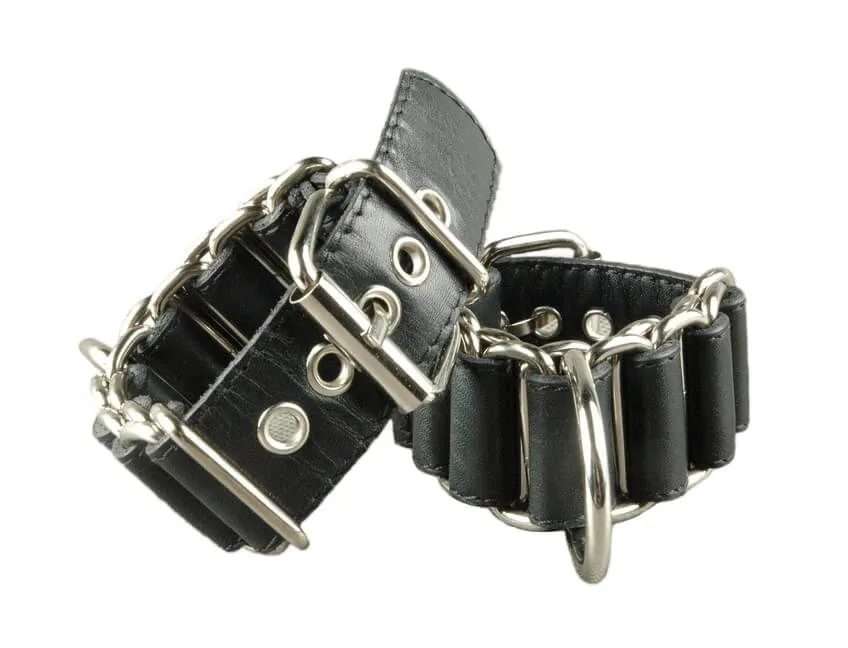 Наручные оковы от российского бренда Beastly сделаны из металлических колец и оплетающей их натуральной кожи черного цвета. Такой аксессуар позволит партнерам поэкспериментировать со своими ощущениями во время интимных игр. С зафиксированными руками будет сложно прикрыться и препятствовать чужим ласкам, что добавит в игру томительное чувство предвкушения.