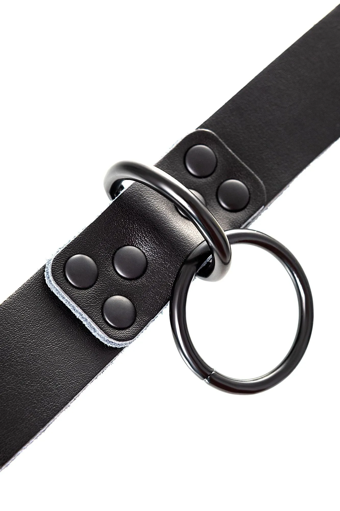 Кожаный ошейник с поводком В черной-черной комнате, в черном-черном ошейнике… Этот ошейник из черной кожи с черной же цепочкой-поводком нельзя назвать просто ограничителем свободы. Вся металлическая фурнитура выдержана в стиле строгого подчинения, не отвлекая внимание от игрового процесса. Он станет для вас стильным аксессуаром и дополнит любой образ. В нем придется следовать за Господином, но это будет очень элегантно! Благодаря универсальным цвету и форме, он подойдет партнеру любого пола, размер регулируется пряжкой. Поводок имеет ручку из кожи, крепится к кольцу ошейника карабином. Длина ошейника 58 см Ширина ошейника 2,5 см Длина поводка 79 см В фотосессии на модели использованы пэстис Theatre 705006