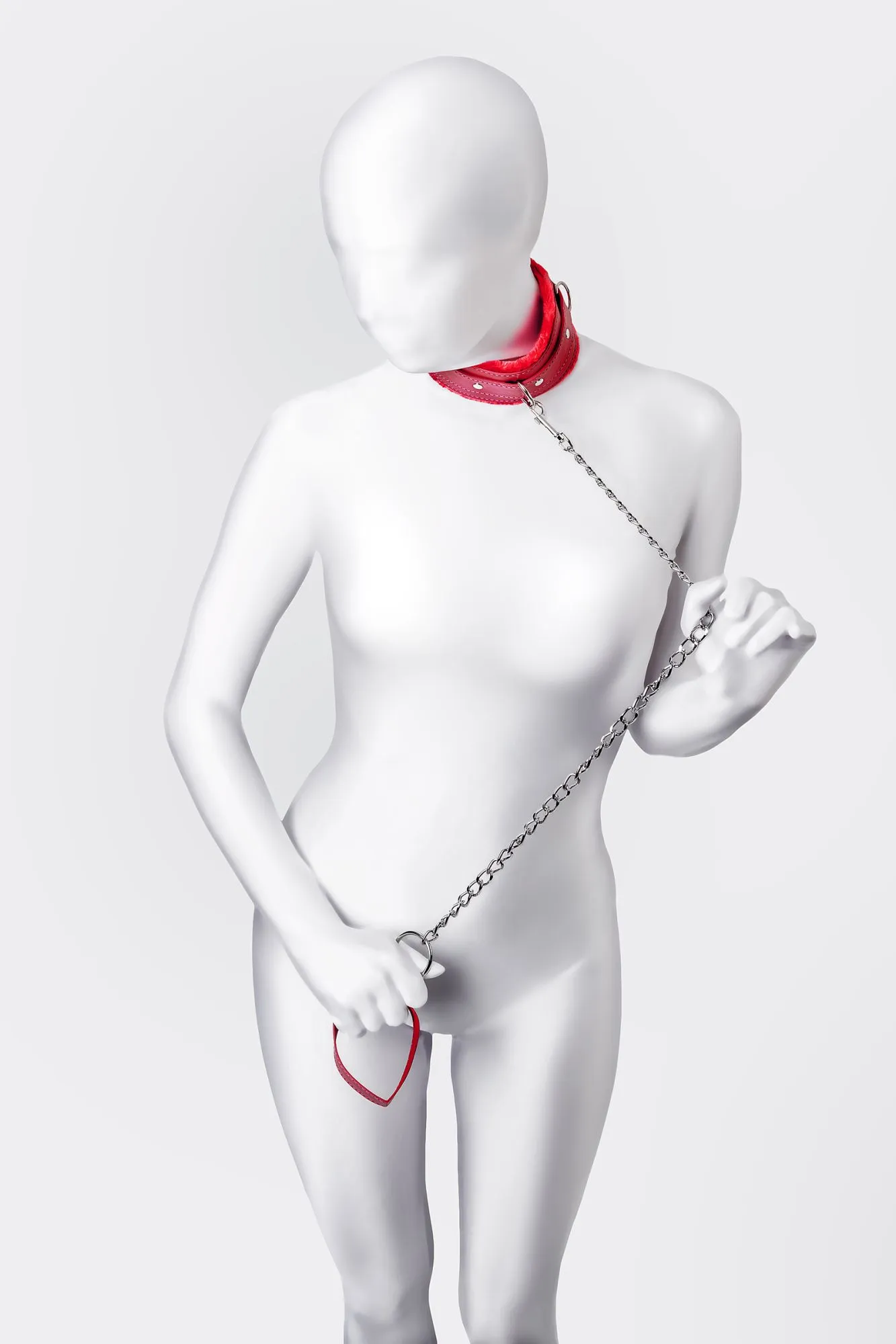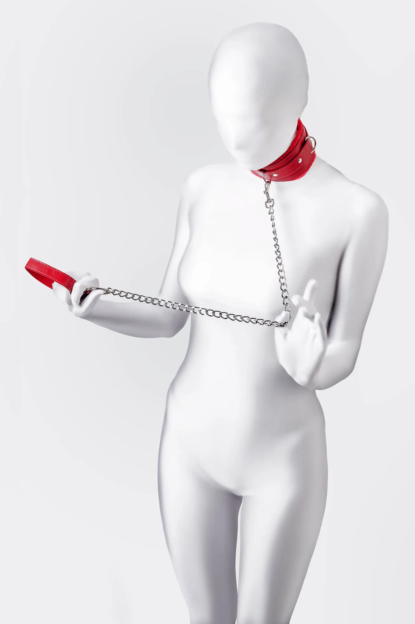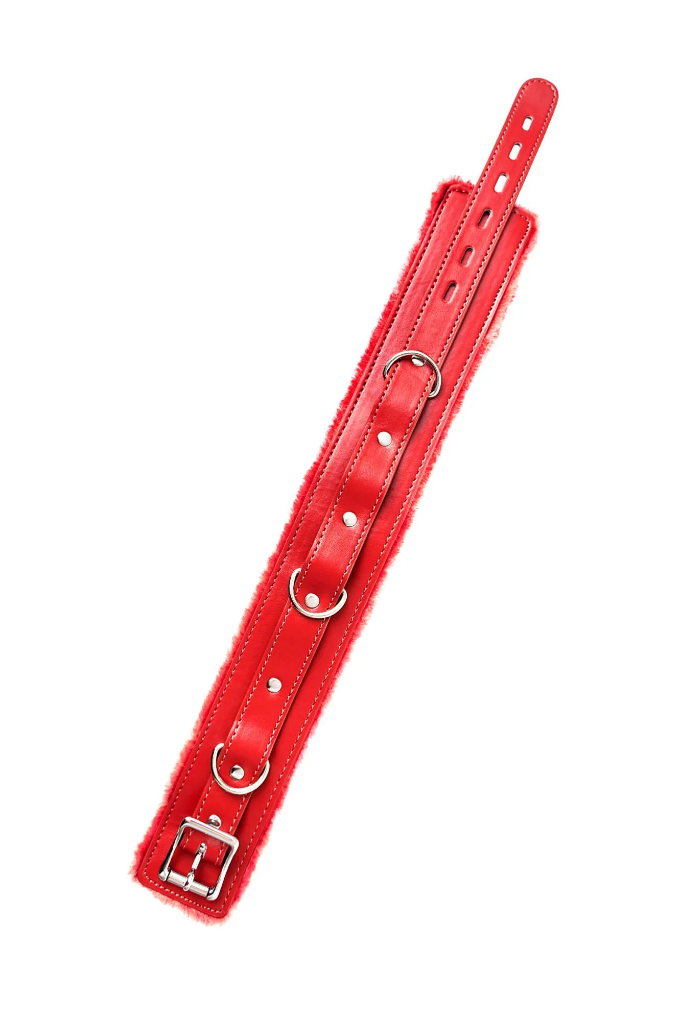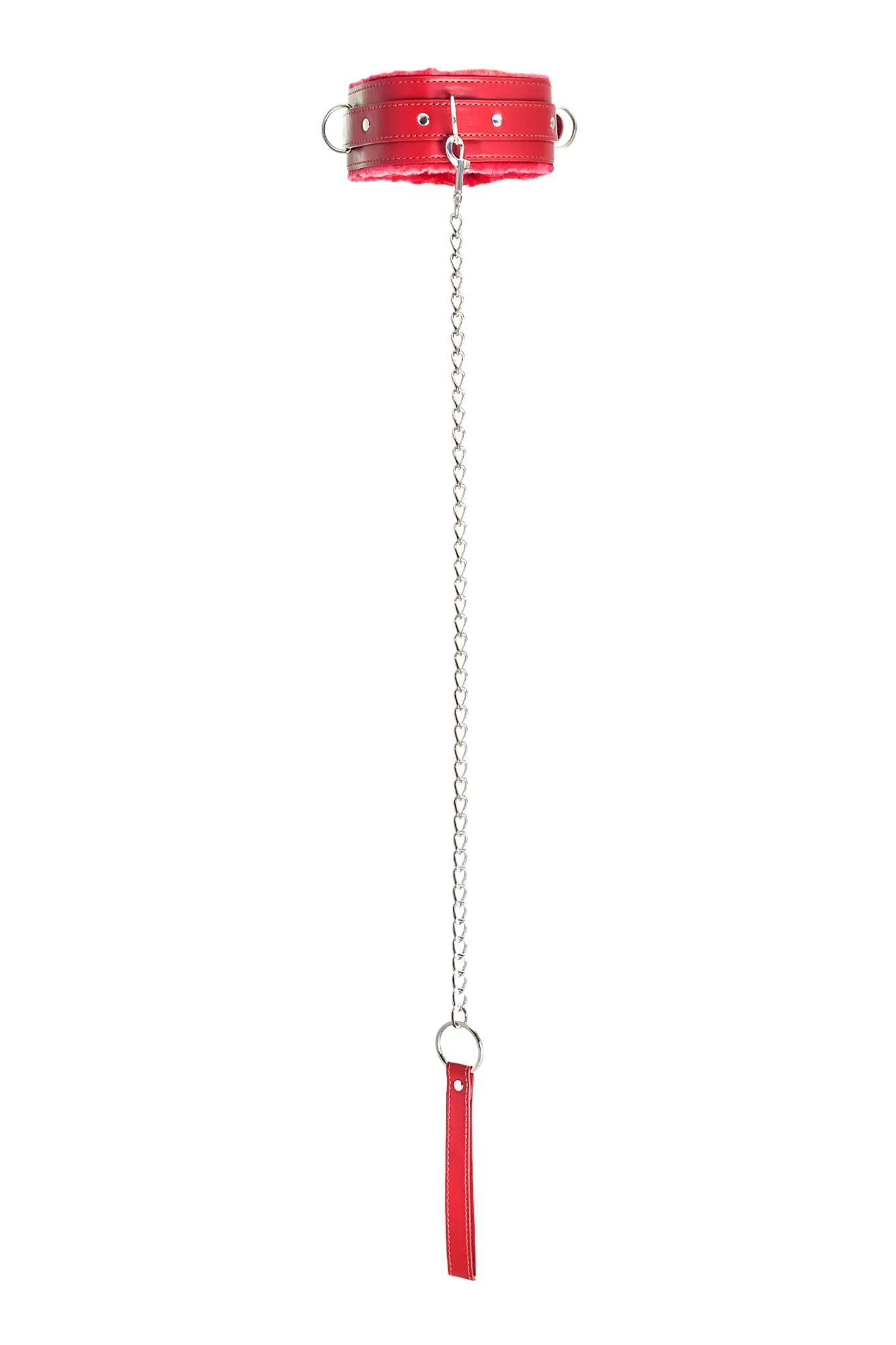 Ошейник яркого красного цвета с металлической отделкой говорит не об агрессии. Этот ошейник говорит о страсти, которую можно проявить, но только с разрешения Доминанта. Подкладка из искусственного меха немного смягчит давление на шею, поэтому выбор этого ошейника можно считать проявлением любви и заботы Доминанта к своему рабу. Ведь в мире БДСМ ошейник — это не только своеобразный ограничитель свободы, но и символ принадлежности своему Хозяину. Пристегивающийся по центру поводок заставляет следовать за Хозяином, куда бы тот ни пошел. Размер регулируется с помощью металлической пряжки, которая служит одновременно декоративным элементом, и добавляет образу немного хардкора. Материал: PU кожа, искусственный мех Цвет: красный Длина ошейника: 43,5 см Ширина ошейника: 5,5 см Длина поводка: 80 см