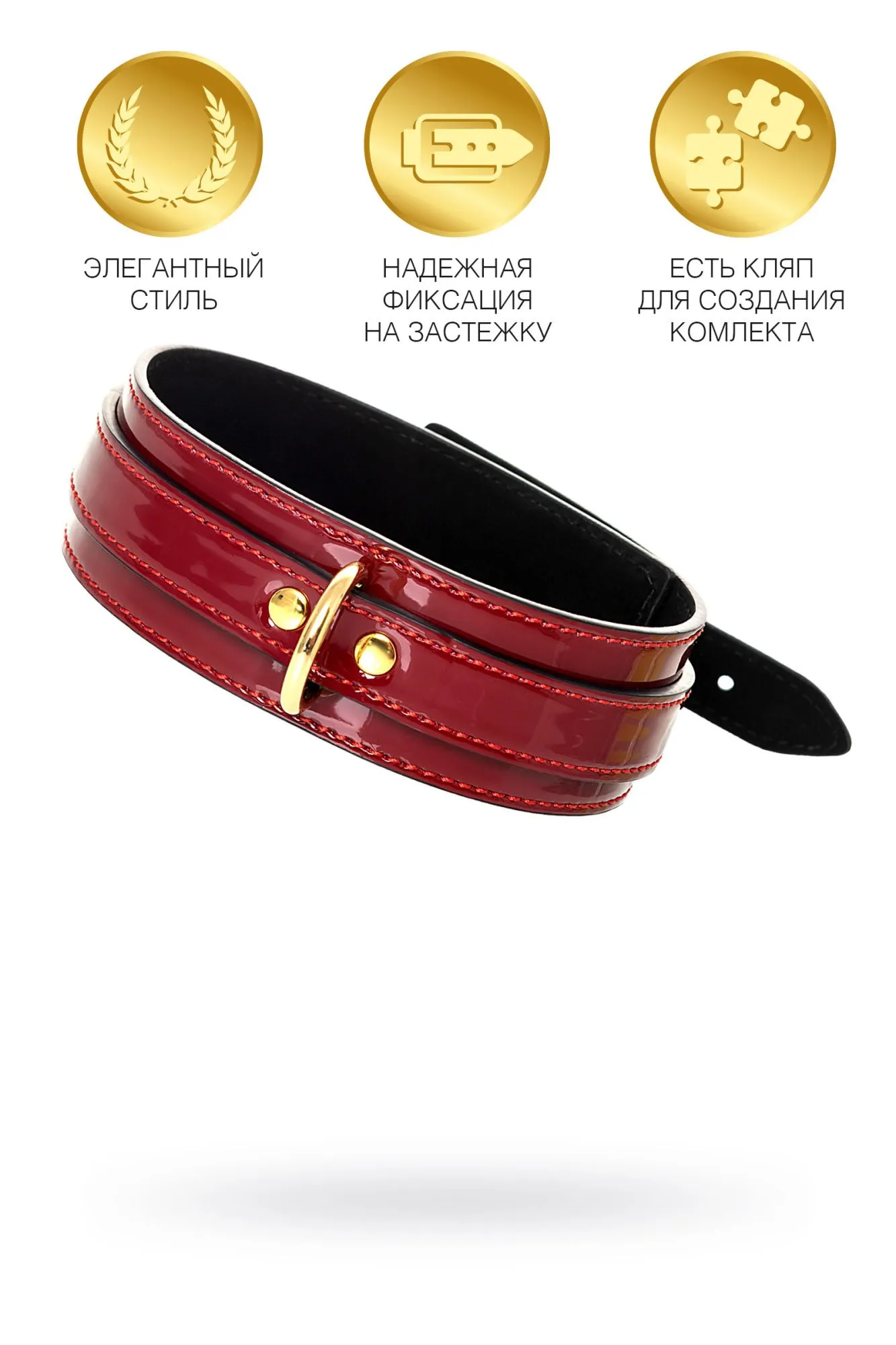 Ошейник винного цвета Театр – всегда обольщение и восхищение. Играйте и подчиняйтесь красиво! Для этого был создан ошейник из лакированного материала благородного винного цвета с металлической отделкой золотого цвета. Он демонстрирует утонченный вкус обладателя, одновременно являясь достаточно строгим атрибутом БДСМ-тематики. Он достаточно жестко обхватывает шею, зато в нем вы всегда будете слушаться своего Господина без возможности опустить голову. Кольцо на ошейнике позволяет дополнить игру поводком или другими необходимыми аксессуарами. Размер регулируется металлической пряжкой. Длина ошейника 41 см Ширина ошейника 4 см Материал: Экокожа В фотосессии на модели использованы пэстис Theatre 705006