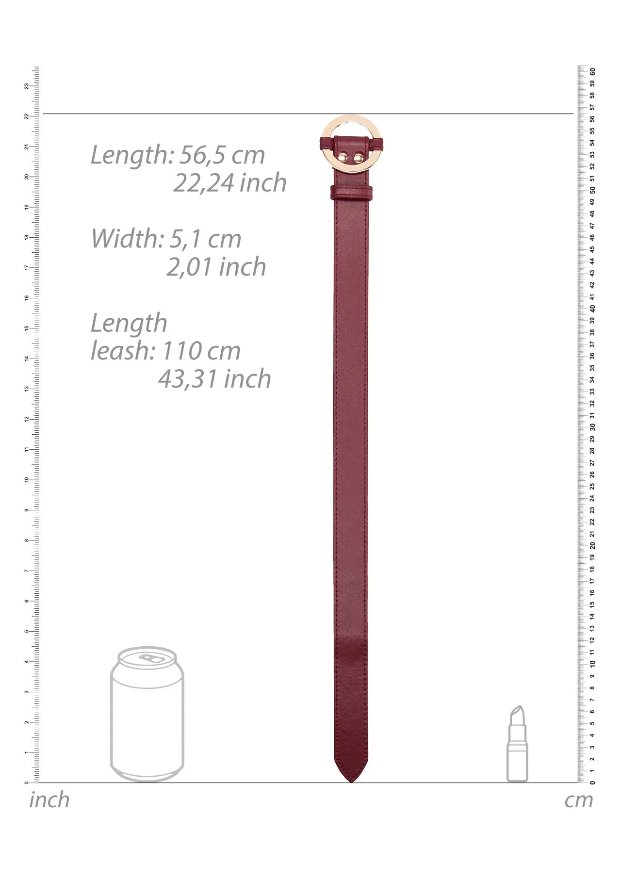 Широкий ошейник с поводком Collar With Leash – Burgundy- атрибут подчинения для эротических ролевых игр и практик БДСМ в бургундском цвете. Он выполнен из кожи и полиуретана, которые обеспечивают нежное прикосновение и не раздражают даже чувствительную кожу. На внешней части ошейника имеется красивое золотое колечко, за которое так же можно зацепить входящий в комплект поводок с фиксацией с помощью кожаной петли на запястье.