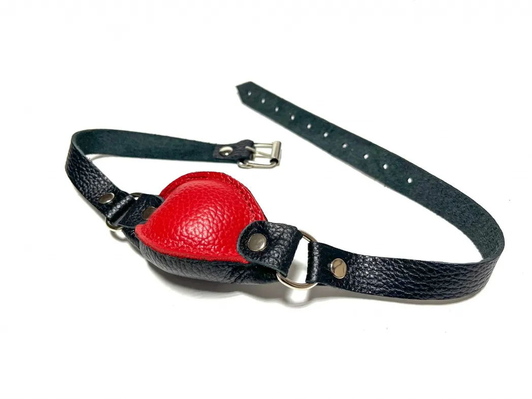 Качественный и удобный кляп, выполненный из натуральной кожи черного и красного цветов. Размеры кляпа 9 х 5см, благодаря наполнителю средней жесткости этот кляп будет комфортен в использовнии. Аксессуар декорирован сварной металлической фурнитурой. Ширина ремешков 1,8см, обхват удобно регулируется с помощью металлической пряжки. Отличный аксессуар для любовной игры и новых ощущений! Материал: натуральная кожа, металл Цвет: черный, красный