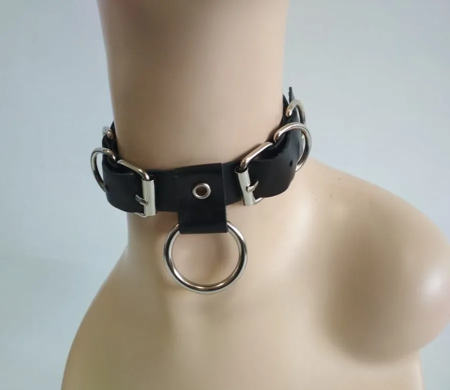 Чокер сделан из мягкой натуральной черной кожи. Декорирован четырьмя металлическими полукольцами и одним большим кольцом диаметром 3,5см. Впереди две пряжки позволяют подобрать нужный размер и чувствовать себя максимально комфортно. Подойдет на обхват от 35 до 53см. Ширина ремешков 2см. Интересный дизайн, мягкая кожа, металлические элементы – всё что нужно для отличного образа. Материал: натуральная кожа, металл Цвет: черный