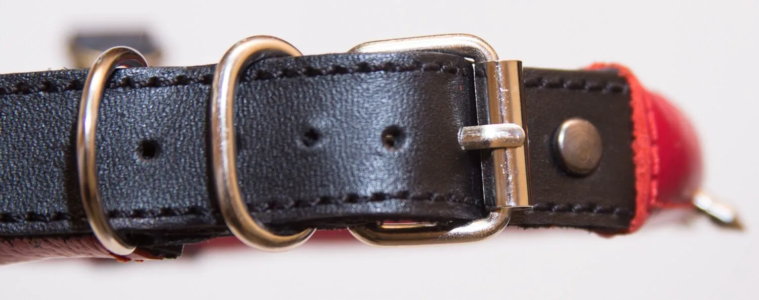 Поклонникам ролевых интимных игр придется по вкусу красный кожаный ошейник. Он декорирован металлическими шипами и небольшим черепом, благодаря которым он выглядит невероятно эффектно. У ошейника есть небольшое колечко, за которое его можно пристегнуть к поводку (в комплект не входит) за небольшой карабин, чтобы добавить играм еще большее разнообразие. Изделие прекрасно подойдет для БДСМ развлечений и позволит реализовать самые нескромные сексуальные фантазии.