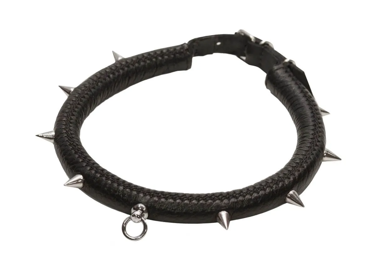 Ошейник прекрасно подойдет для БДСМ развлечений и позволит Вам реализовать свои самые нескромные сексуальные фантазии. Ошейник выполнен из натуральной кожи и украшен металлическими шипами, благодаря которым он выглядит невероятно эффектно. У него есть специальное колечко, к которому можно пристегнуть поводок (в комплект не входит), чтобы добавить играм еще большее разнообразие.