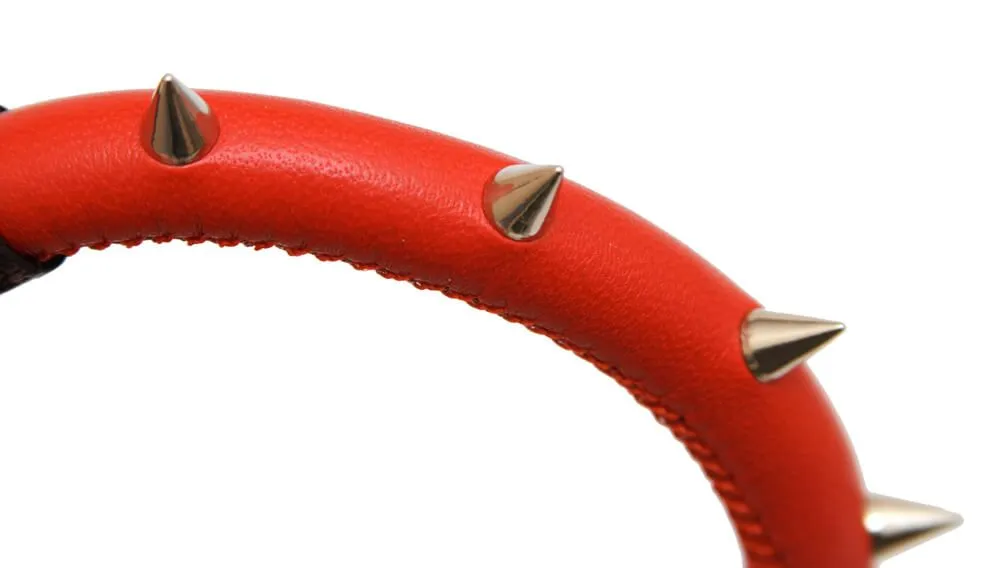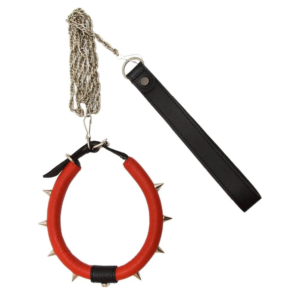 Поклонникам ролевых интимных игр придется по вкусу красный кожаный ошейник, украшенный металлическими шипами и небольшим черепом. Также в комплекте есть поводок на цепочке, который пристегивается к кольцу на ошейнике при помощи карабина. Изделие прекрасно подойдет для БДСМ развлечений и позволит реализовать самые нескромные сексуальные фантазии. Этот необычный аксессуар позволит Вам в буквальном смысле слова держать своего партнера на коротком поводке!