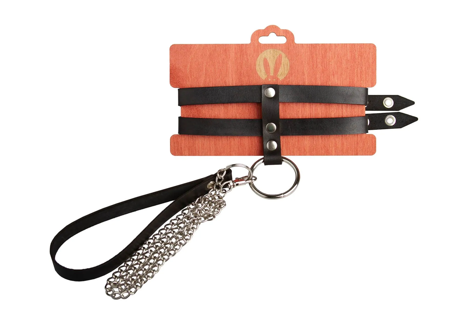 Ошейник от бренда Pink Rabbit состоит из двух ремешков из натуральной кожи черного цвета. У ошейника есть металлический поводок длиной 80 см, за который при необходимости можно будет одергивать своего партнера или направлять его в нужную сторону. Также поводок ограничит подвижность партнера. Такой ошейник поможет создать необходимую атмосферу во время игр с элементами БДСМ, а также будет символизировать, что нижний партнер добровольно находится в полной власти своего хозяина. К большому металлическому кольцу на ошейнике также можно присоединять и другие аксессуары при помощи карабинов.