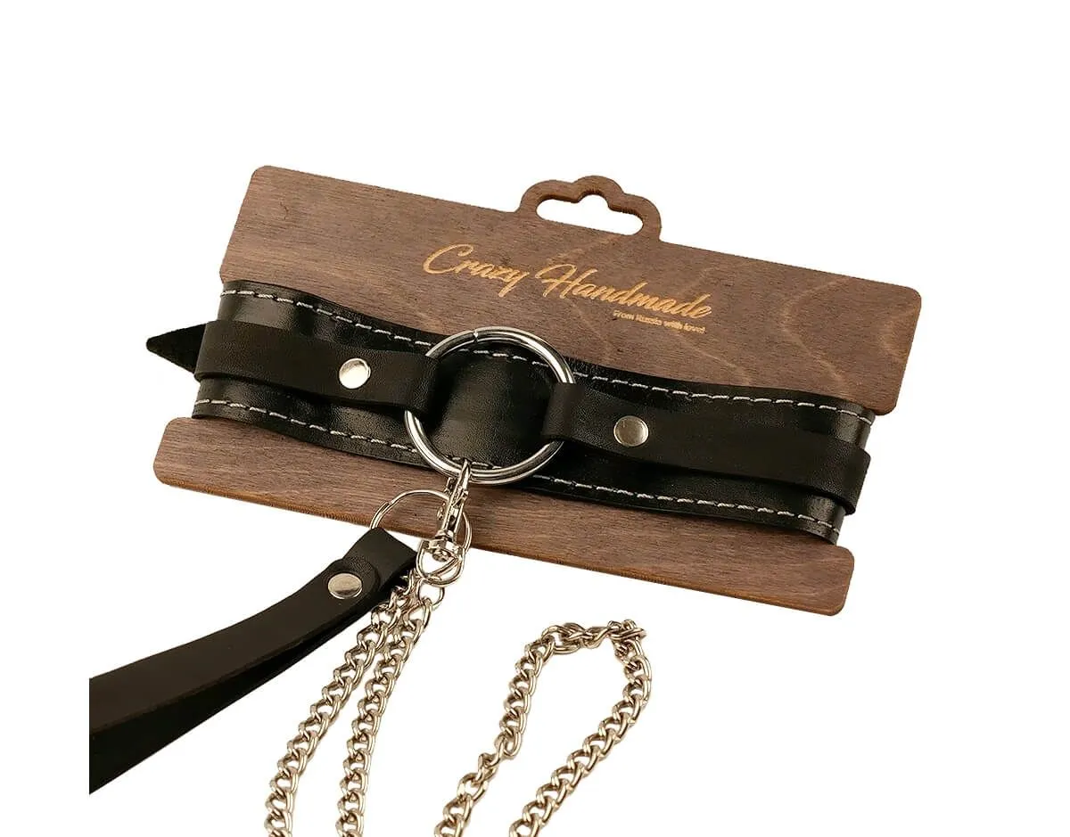 Ошейник-чокер от бренда Pink Rabbit выполнен из натуральной кожи черного цвета. У него есть металлический поводок длиной 80 см, а также удобная петелька для запястья. Без поводка ошейник можно носить просто как стильное и дерзкое украшение, а во время интимных игр с элементами БДСМ использовать его в качестве символа подчинения своему партнеру. За поводок при необходимости можно одергивать партнера или направлять его в нужную сторону, а также ограничивать его движения. К большому металлическому кольцу на ошейнике можно также присоединять и другие аксессуары при помощи карабина.