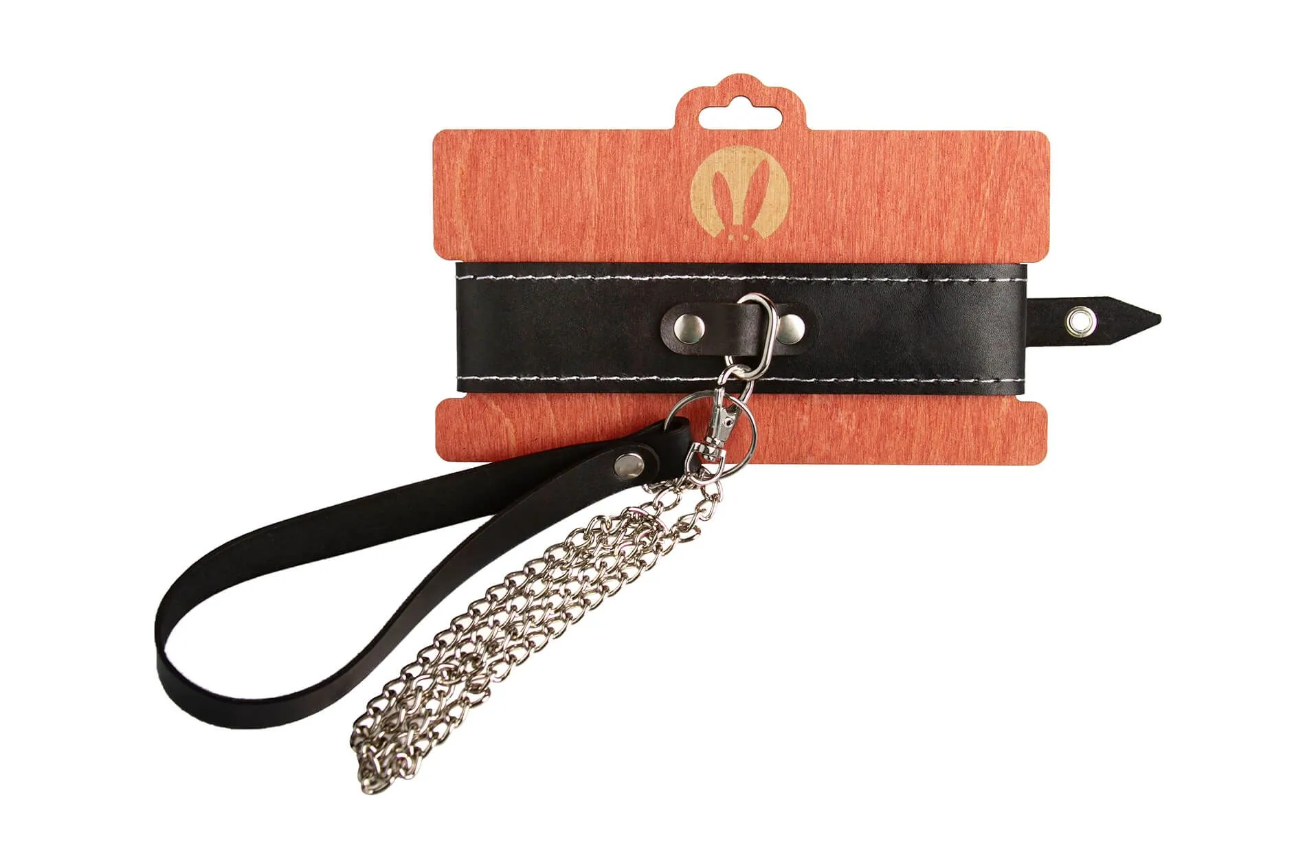 Двухслойный ошейник от бренда Pink Rabbit понравится тем, кто предпочитает игры с элементами БДСМ. Ошейник выполнен из натуральной кожи черного цвета и декорирован контрастной белой строчкой. У него есть металлический поводок длиной 80 см, а также удобная петелька для запястья. При помощи поводка можно будет ограничить движения партнера, одергивать его при непослушании или направлять в нужную сторону. К большому металлическому кольцу на ошейнике можно также присоединять и другие аксессуары при помощи карабина. Такой ошейник может стать как просто дерзким украшением, так и символом подчинения своему партнеру.