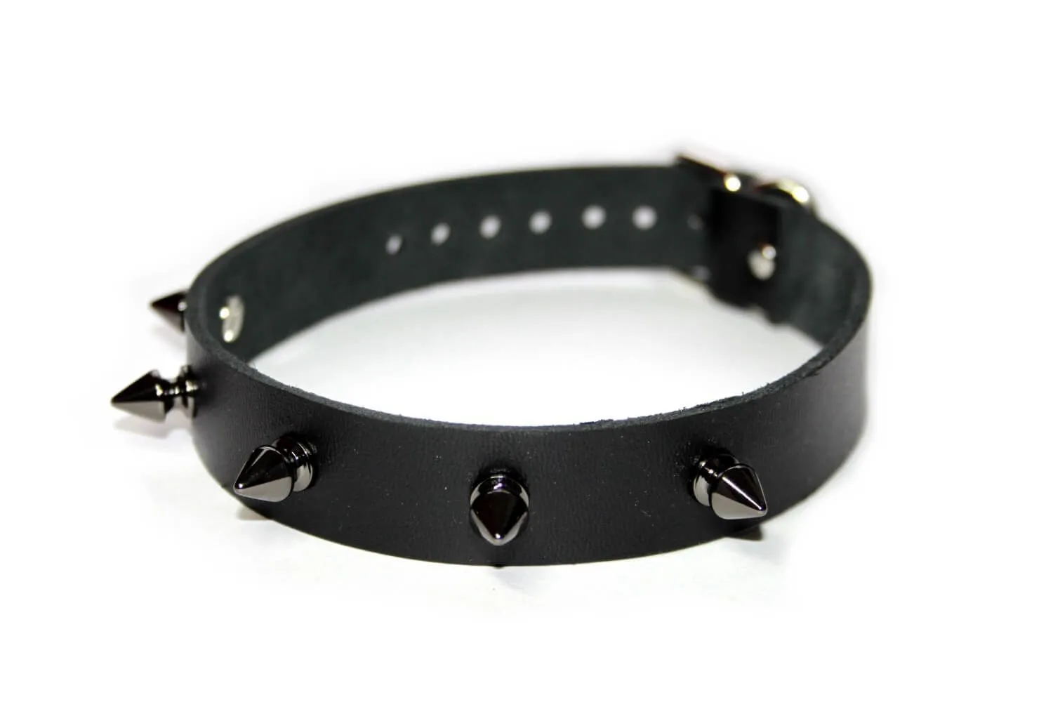 Ошейник выполнен из натуральной кожи толщиной 2.3 мм и декорирован металлическими шипами черного цвета. Он понравится тем, кто предпочитает интимные игры с элементами БДСМ, ведь он добавит образу сексуальности и дерзости и идеально дополнит любой ролевой эротический костюм. Такой ошейник можно носить и в повседневной жизни, чтобы подчеркнуть страстность своей натуры.