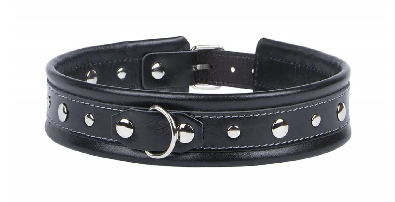 Ошейник от компании Fire Horse поможет Вам разнообразить свою интимную жизнь и добавить в нее немного остроты, вне зависимости от того, есть ли у Вас опыт в играх с элементами БДСМ. Он выполнен из натуральной кожи черного цвета и декорирован отстрочкой контрастного серого цвета. Также ошейник украшен металлическими заклепками, которые придают ему более эффектный вид. Наденьте этот аксессуар на своего партнера, чтобы утвердить над ним свою власть и исполнить все тайные фантазии. У ошейника есть металлическое D-кольцо, к которому можно присоединить поводок или другие бондажные аксессуары при помощи карабина.