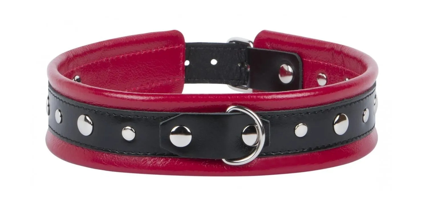 Ошейник от компании Fire Horse внесет необычайное разнообразие в Вашу интимную жизнь, познакомив Вас с играми с элементами БДСМ. Он выполнен из натуральной кожи контрастных красного и черного цветов и декорирован металлическими заклепками. Надетый на партнера, ошейник может стать своеобразным символом подчинения. Если пара доверяет друг другу, то такие игры в господина и раба позволят партнерам получить особое удовольствие от подчинения и власти. Также у ошейника есть металлическое кольцо, к которому можно присоединить поводок или другие бондажные аксессуары при помощи карабина.