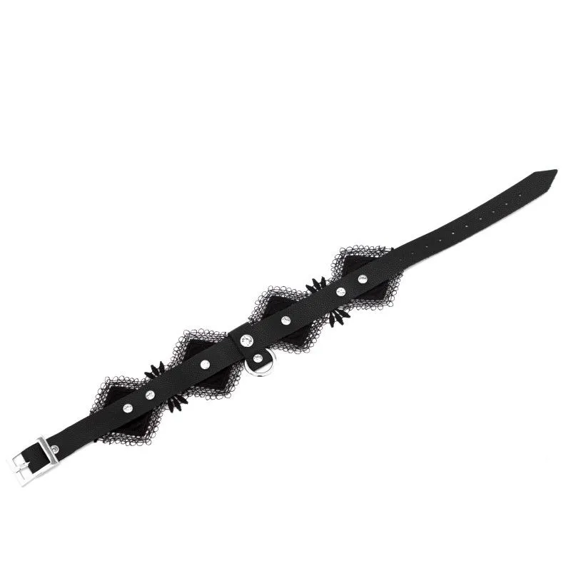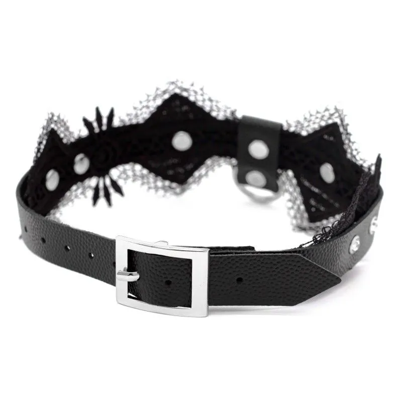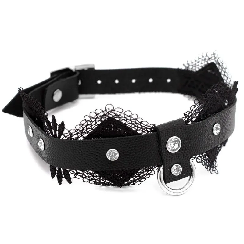 Чокер выполнен из натуральной кожи толщиной 2.3 мм и декорирован мягким кружевом. Такой аксессуар можно носить с повседневной одеждой, чтобы придать своему образу дерзости и сексуальности. Также он будет отлично смотреться вместе с ролевым эротическим костюмом во время любовной игры с партнером. Чокер акцентирует внимание на прекрасной шейке и подчеркнет страстность Вашей натуры. Длина чокера регулируется при помощи ремешка с пряжкой, поэтому Вы сможете подогнать его под нужный размер. Длина чокера 40 см. Есть колечко, чтобы при необходимости пристегнуть поводок - всё для простора вашей фантазии.