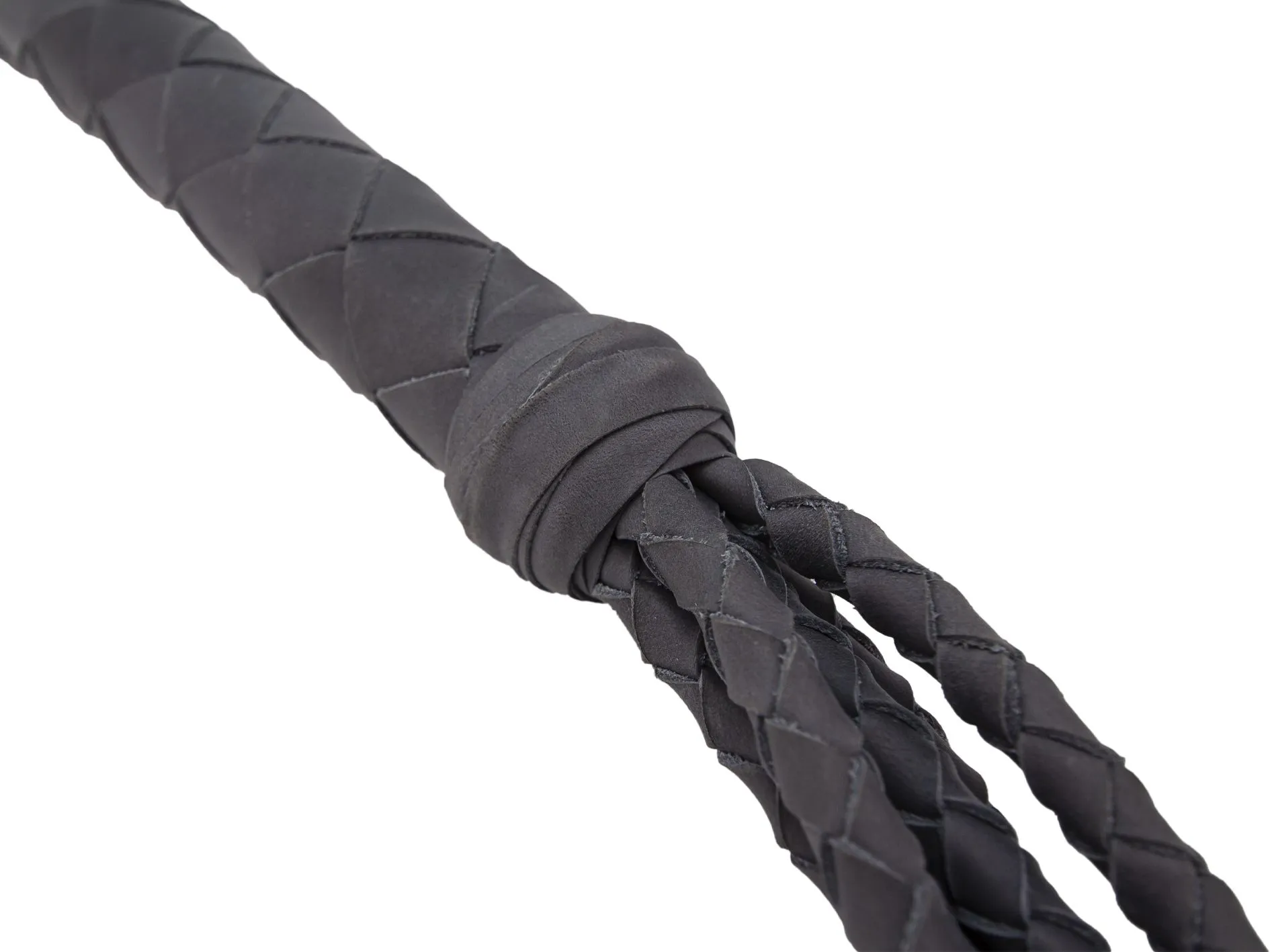 Плеть многохвостка выполнена из лаковой натуральной кожи в черно-красной цветовой гамме. Состоит из плетенной ручки и 6 хвостов круглого плетения. Хвосты заканчиваются "кисточками" сплетенными особым способом без узлов. На рукоятке имеется петля для фиксации на руке. Имеет достаточно большую площадь соприкосновения с телом при ударе, но, по сравнению с флогером, оказывает более сильное воздействие при той же силе, так как имеет особое плетение хвостов. Применяется на уже разогретом теле.