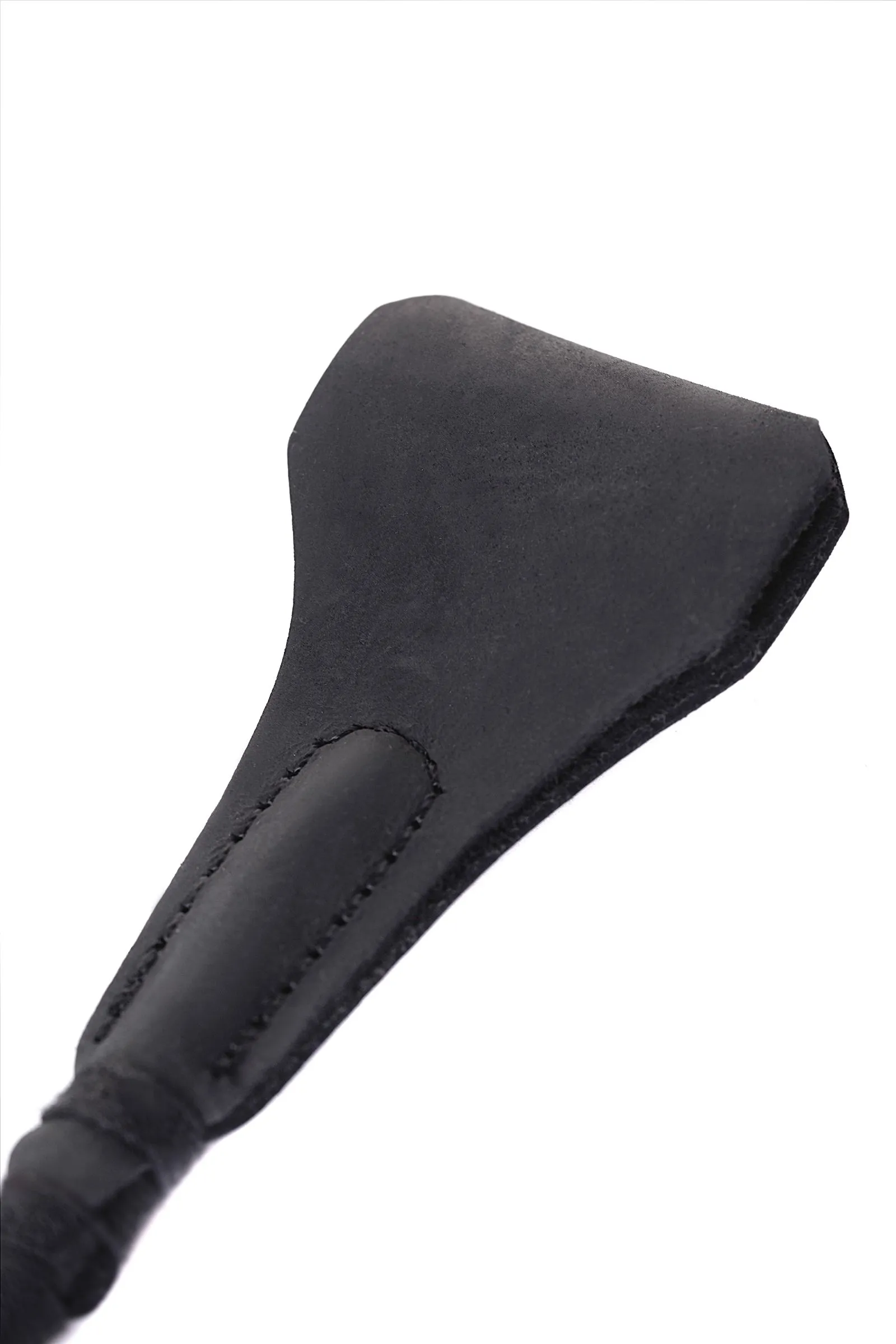 Чёрный кожаный стек 65 см с небольшим шлепком и стильной ручкой — такой интересный атрибут не только позволит совершать умеренные и сильные воздействия, но и покажет характер его хозяина. Качественная порка — не единственная причина, по которой девайс пользуется большой популярностью. Но, пожалуй, главная. Поэтому очень важно придерживаться основных принципов безопасности. Так, наносить удары стеком рекомендуется по ягодицам, следя, чтобы кончик аксессуара не оставлял захлёстов. Тогда любые игры со стеком будут доставлять максимальное наслаждение.