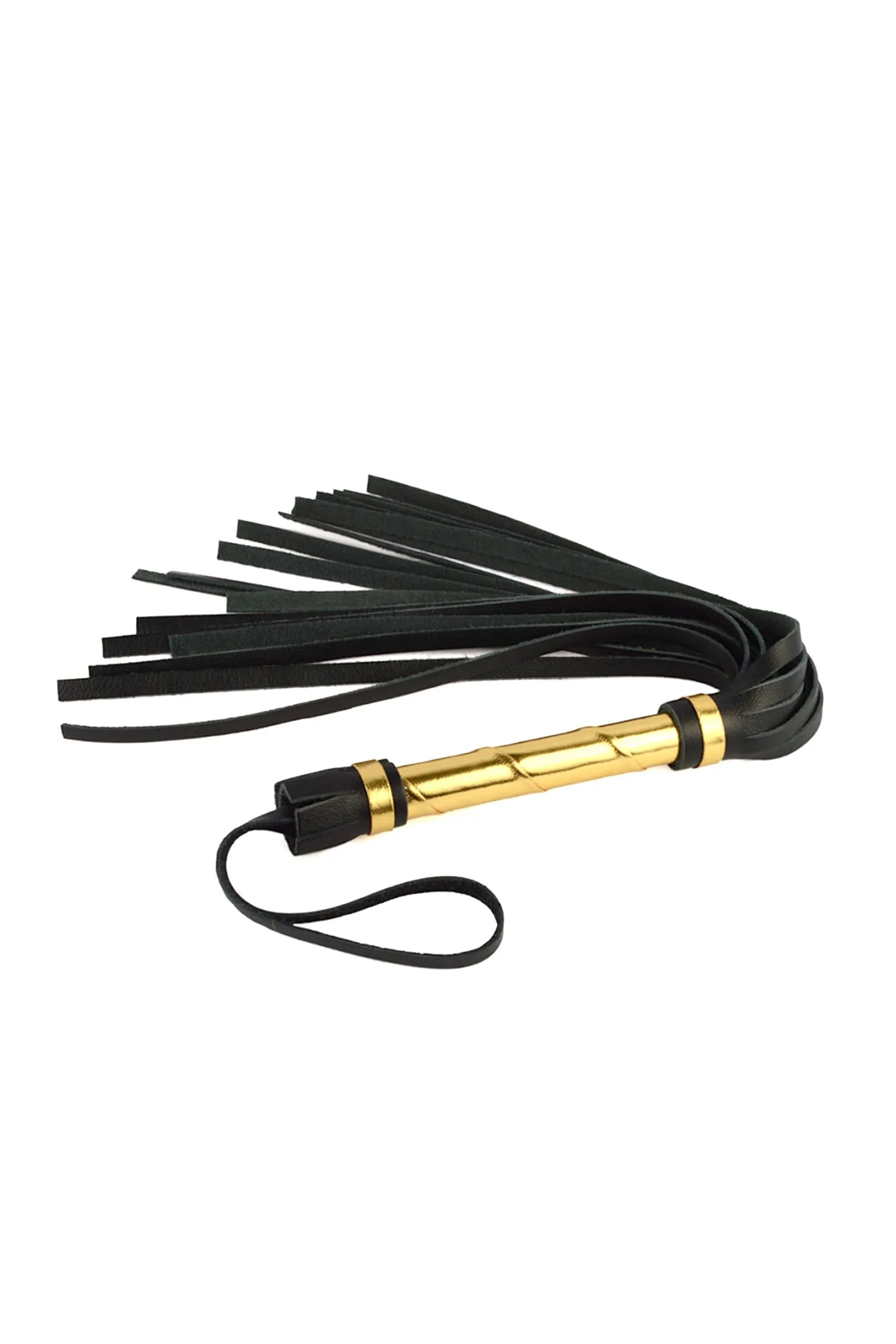 Если появилось желание испытать что-то новое и необычное в сексуальном плане или как-то разнообразить свои половые отношения, необходимо запастись специальными аксессуарами, которые помогут воплотить эфемерные фантазии в реальность. Для новичков желающих перемен, компания Sitabella предлагает прекрасный секс-аксессуар – плеть c декоративной отделкой под золото. Плеть изготовлена из натуральной кожи черного цвета. Ударная часть плети имеет 20-22 плоских хвоста, это даёт возможность произвести качественную и комфортную флогеляцию. Тонкий ремешок-петля на торце ручки, позволяет освободить руки, перемещая девайс на запястье. Общая длина изделия составляет 40 см. Длина рукояти 10 см.