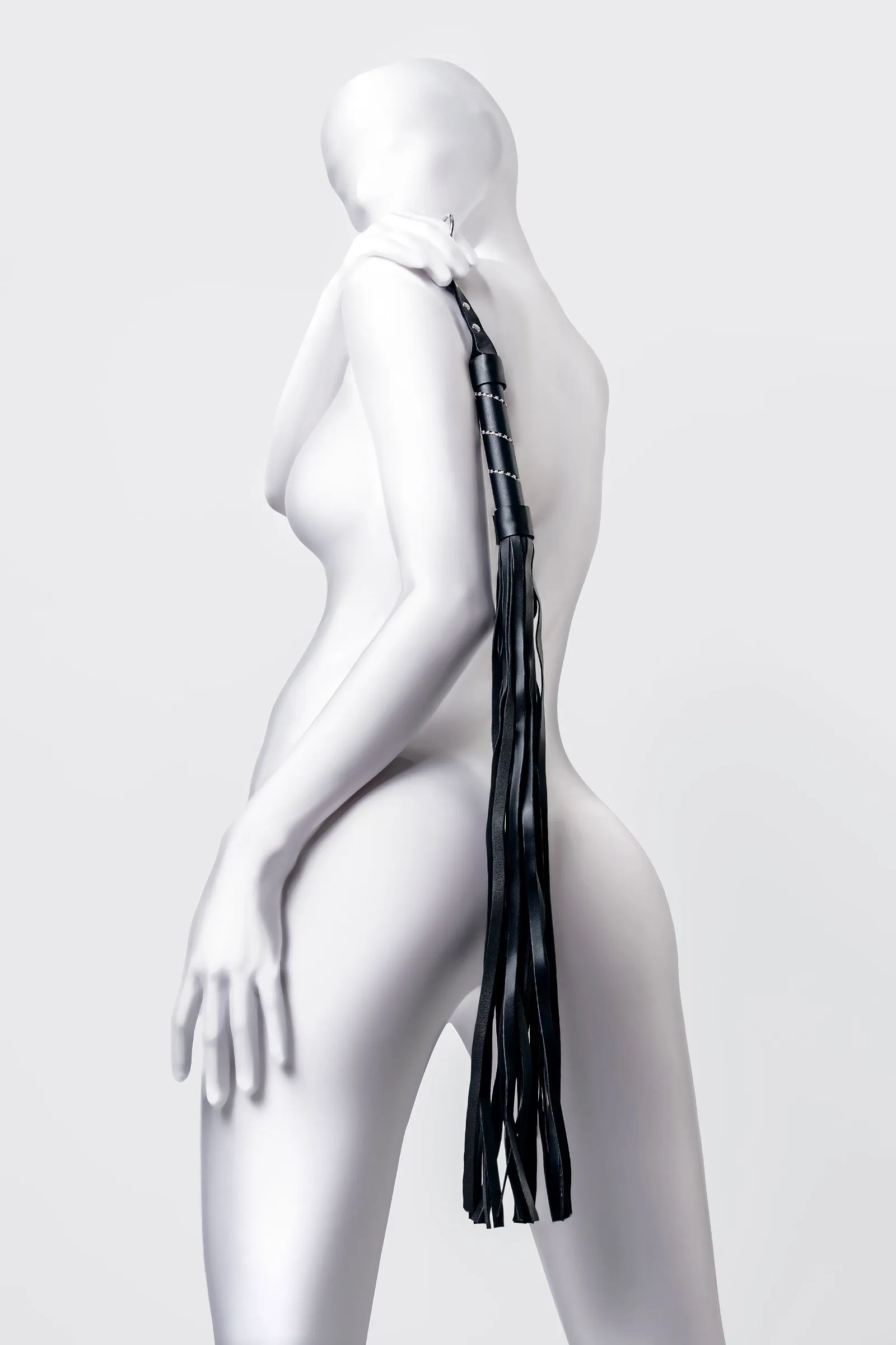 Доминирование и подчинение с помощью ограничения свободы — это еще не все, что вы можете сделать друг с другом. Черный флоггер пригодится и для разогрева, и для ощутимого наказания непослушного партнера. Оптимальный размер, эстетика и функционал – далеко не все достоинства этого изящного девайса. Ручка из черной PU кожи украшена стразами, удобно лежит в руке. Гладкие хвосты рабочей части плети выполнены из мягкой черной PU кожи. Петля служит для более удобного захвата. Сочетание напряжения, власти и элегантности. С этой плеткой можно наказать провинившегося сабмиссива и еще раз продемонстрировать кто в паре главный. Материал: PU кожа Цвет: черный Общая длина: 64 см Рабочая длина: 48,5 см