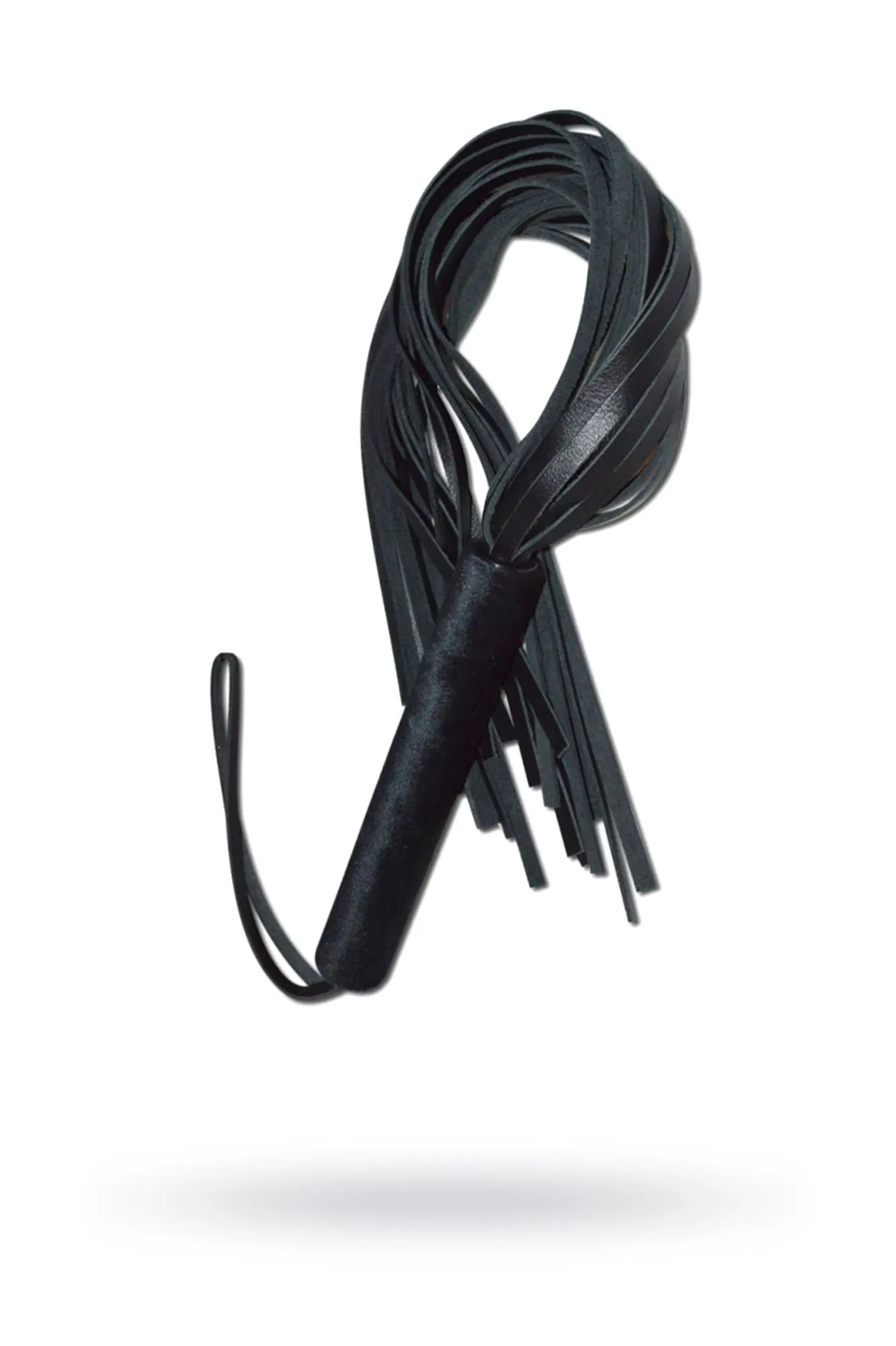 Классическая чёрная плеть – это один из основных атрибутов ролевых игр, при помощи которого, можно и поощрить, поглаживая, и наказать, более сильными ударами, и просто разогреть тело, для обострения тактильной и эмоциональной чувственности. Плеть имеет жёсткую 18 см ручку. Она обтянута бархатистой велюровой тканью. На конце рукояти располагается кожаная петля, для ношения плети на запястье или хранения изделия в подвешенном состоянии. Длинная 45 см хвостовая часть, состоит из 22-24 плоских лент из натуральной кожи Ладья, которые надёжно зафиксированы на рукояти, что даёт возможность использовать данный аксессуар в самых темпераментных и страстных ролевых играх. Хвосты плети довольно мягкие, что позволяет использовать данный девайс, не только опытным пользователям, но и новичкам. Общая длина изделия около 63 см. Длина рукояти 18 см; Ø 2,1 см