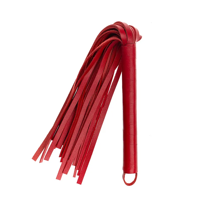 Ручка из красной кожи удобно лежит в руке. Мягкие замшевые хвосты могут послужить для мягкого поглаживания в качестве прелюдии, или для разогрева, порка получится мягкой, но ощутимой. В чьих руках эта плетка, тот и устанавливает правила.