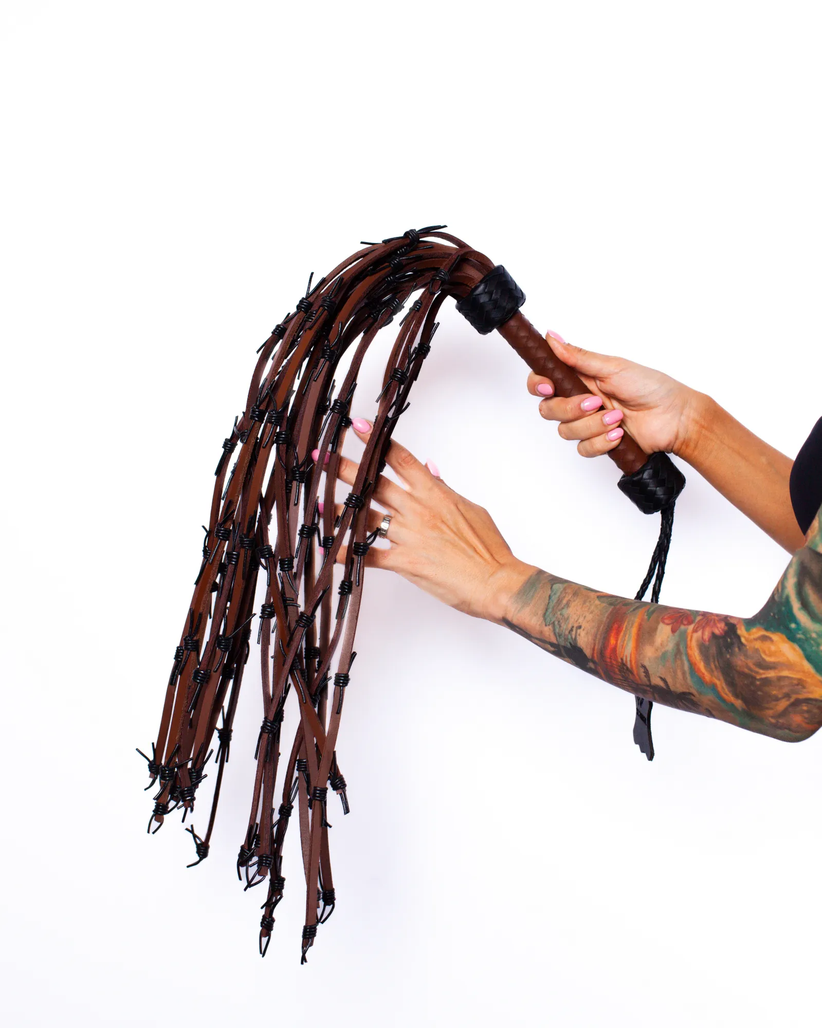 Шикарный плетеный флоггер из натуральной кожи премиум качества. На хвостах флоггера дизайнерское плетение, для усиления воздействия. Флоггер имеет удобную ручку и петлю для фиксации девайса на запястье.