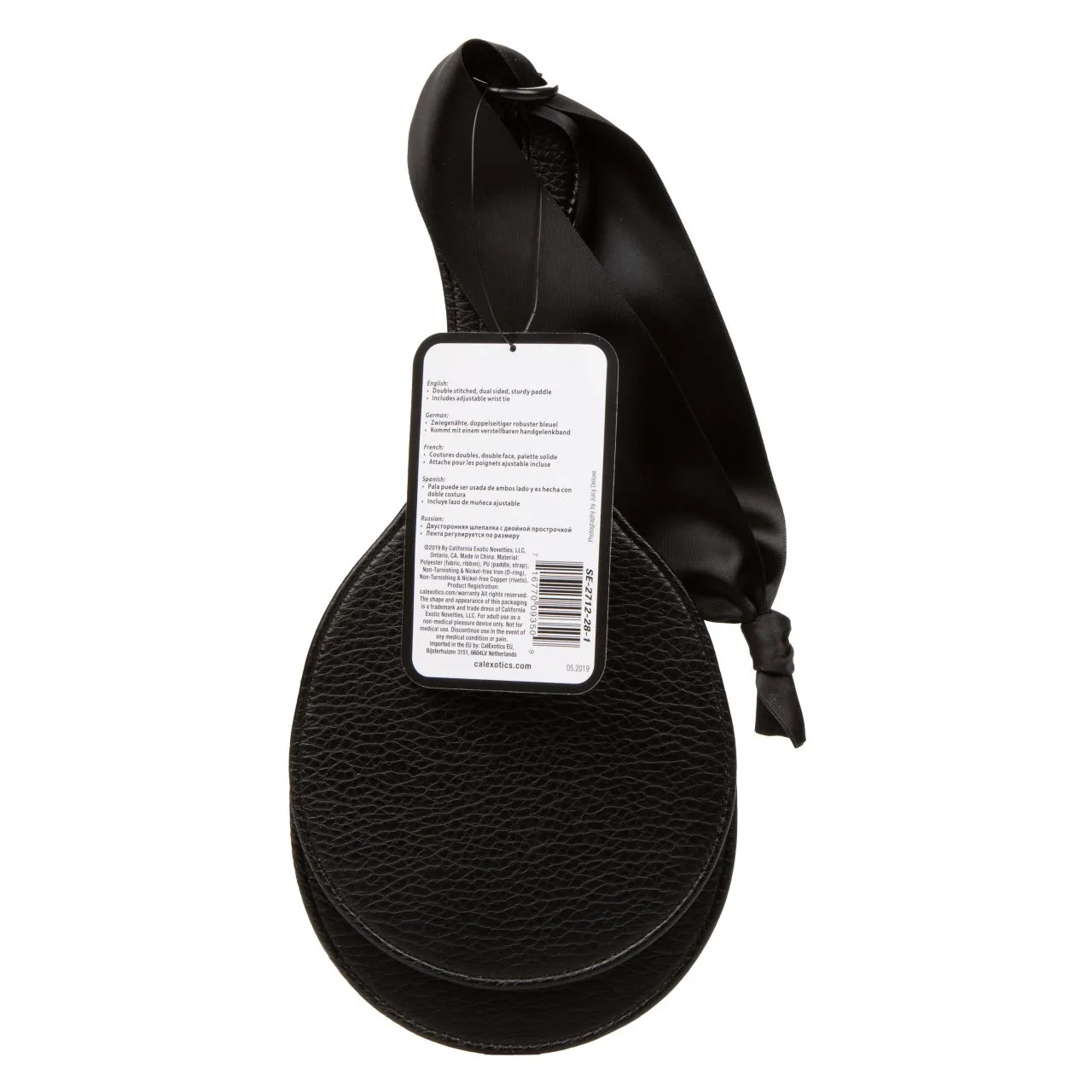 Шлепалка (паддл) Scandal Round Double Paddle - ударный девайс для эротических ролевых игр и практик БДСМ. Он имеет стильную отделку с внешней стороны и мягкую, приятную на ощупь с внутренней. Ударная часть имеет округлую форму, плавно перетекающую в рукоять с удобной петлей для фиксации изделия на запястье (темляк). Паддл состоит из двух пластин разного размера, что создает дополнительный звуковой эффект при ударе.