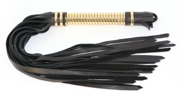 БДСМ-аксессуар 54013ars разнообразит Ваши интимные игры. Аккуратная плетка с жесткой ручкой из металла под золото поможет почувствовать власть над партнером. БДСМ-аксессуар сплетен из мягкой кожи, не оставляет следов на теле. Кожаная плетка наносит легкие удары и одновременно дарит непередаваемые ощущения. Для фиксации на запястье предусмотрена специальная петелька. Характеристики плетка кожаная цвет золото 54013ars: цвет – черный с золотом, материал – кожа, металл, длина хлыста – 27 см, длина ручки – 15 см, производитель – BDSM Арсенал (Россия).