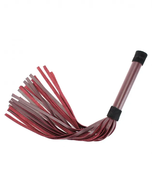 Плеть выполнена из натуральной кожи бордового цвета. Ручка обтянута гладкой кожей и декорирована элементами из черной замши. Длина изделия 45 см. Аксессуар позволяет в полной мере насладиться играми в стиле БДСМ.