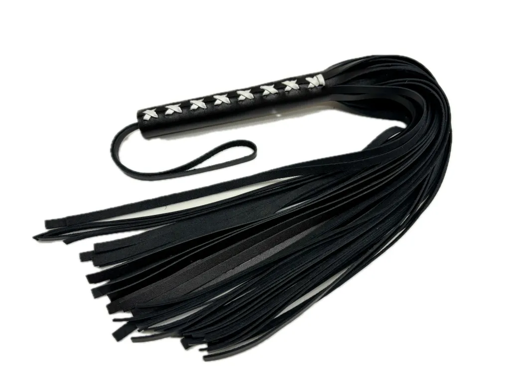 Плеть из натуральной кожи Sex Game - уникальная модель, выполненная из цельного куска гладкой натуральной кожи высокого качества, в классическом черном цвете. Плеть очень пышная и богатая, в ней 50 хвостов! На рукоятке находится плетение, выполненное белой кожей, что придает особый шарм, Общая длина аксессуара 57см, длина хвостов 40см. Благодаря своей цельной конструкции, данная плеть прослужит Вам долго, хвосты не оторвутся и сохранят свой благородный вид, аксессуар очень надежный и красивый. Для удобства на рукоятке имеется кожаная петелька. Материал: натуральная кожа