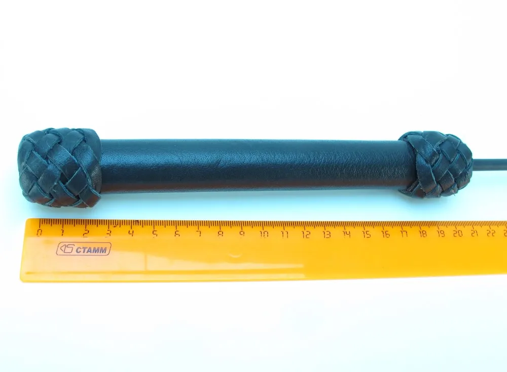 Стек сделан из прочного сердечника с оплетением из кожи. Наконечник в виде хлопушки из кожи для осуществления ударов. Девайс отлично подходит для БДСМ игр. Мягкая и гибкая конструкция позволяет избежать повреждений тела даже при сильных ударах. Характеристики: длина БДСМ девайса составляет 79 см, хлопушка сделана из подшитой кожи, шириной 5 см, длиной 40 см, рукоятка стека жёсткая. Страна - Россия. Без упаковки.