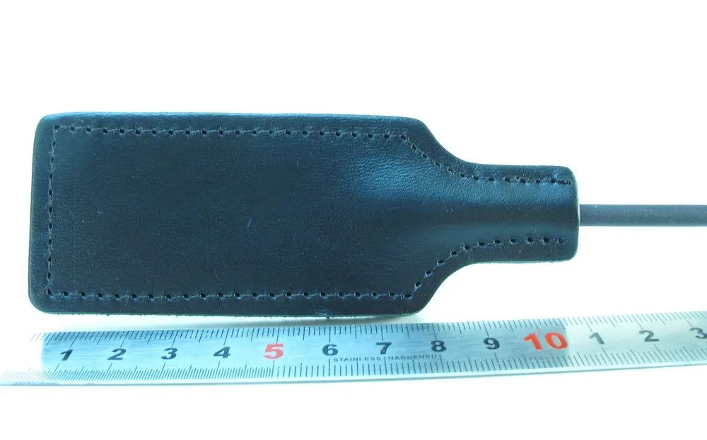 Стек сделан из прочного сердечника с оплетением из металла. Наконечник в виде хлопушки из кожи для осуществления ударов. Девайс отлично подходит для БДСМ игр. Мягкая и гибкая конструкция позволяет избежать повреждений тела даже при сильных ударах. Характеристики: длина БДСМ девайса составляет 73 см, хлопушка сделана из подшитой кожи, шириной 4 см, длиной 11 см, рукоятка стека жёсткая. Страна - Россия. Без упаковки.