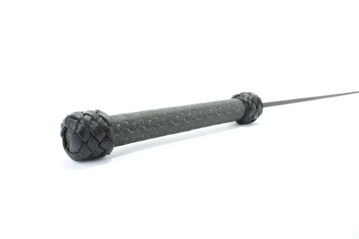 Стек сделан из прочного сердечника с оплетением из кожи. Наконечник в виде хлопушки из кожи для осуществления ударов. Девайс отлично подходит для БДСМ игр. Мягкая и гибкая конструкция позволяет избежать повреждений тела даже при сильных ударах. Характеристики: длина БДСМ девайса составляет 73 см, хлопушка сделана из подшитой кожи, шириной 4 см, длиной 11 см, рукоятка стека жёсткая, обшита кожей. Страна - Россия. Без упаковки.