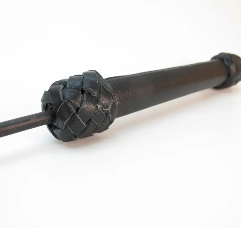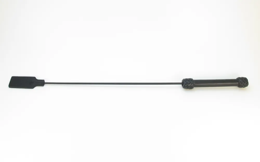 Стек сделан из прочного сердечника с оплетением из кожи. Наконечник в виде хлопушки из кожи для осуществления ударов. Также на ручке присутствует кожаная петля, которая позволяет закрепить стек при проведении наказания партнёра. Девайс отлично подходит для БДСМ игр. Мягкая и гибкая конструкция позволяет избежать повреждений тела даже при сильных ударах. Характеристики: длина БДСМ девайса составляет 73 см, хлопушка сделана из подшитой кожи, шириной 4 см, длиной 11 см, рукоятка стека жёсткая, обшита кожей. Страна - Россия.