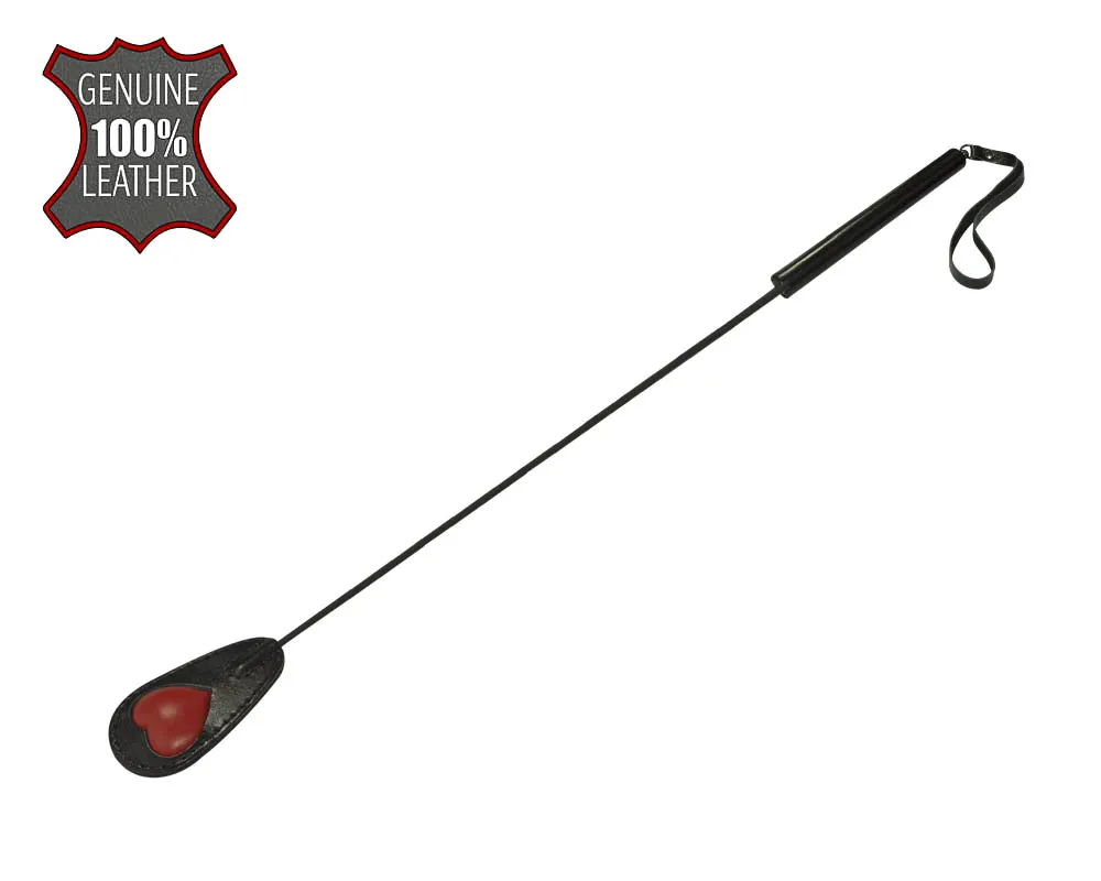 Стек состоит из жесткой рукояти, длиной 15 см, гибкого полимерного хлыста и каплеобразной хлопушки из натуральной кожи, длиной 12 см. На хлопушке имеется объемное мягкое сердечко. Общая длина стека 65 см.