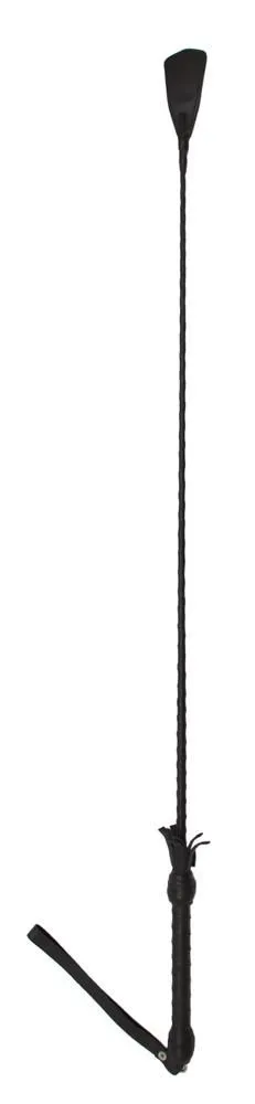 Этот стек состоит из гибкой основы, овитой натуральной кожей черного цвета, наконечника длиной 10 см и удобной рукояти с петлей для надевания на руку.