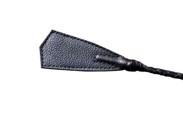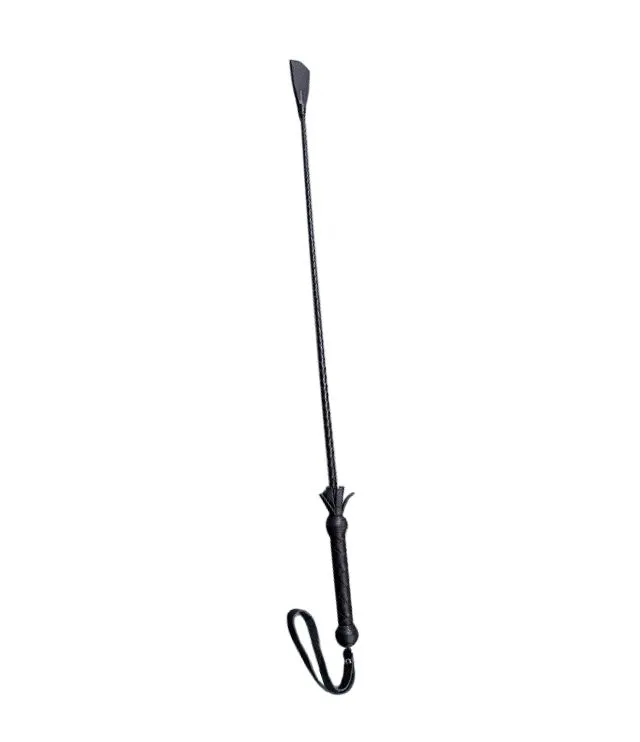 Этот стек состоит из гибкой основы, овитой натуральной кожей черного цвета, наконечника длиной 10 см и удобной рукояти с петлей для надевания на руку. Данный аксессуар для игр BDSM возможно применять для ласковых поглаживаний, чтобы разогреть партнера, или для более ощутимых ударов. Каждый удар этого девайса будет нежно бить по коже и разносить удар по всему телу, отдаваясь приятными возбуждающими волнами. Также использовать этот длинный стек можно и в качестве указки. Развлечения с элементами BDSM отлично разнообразят сексуальные игры с партнером, сделав их насыщеннее и ярче!