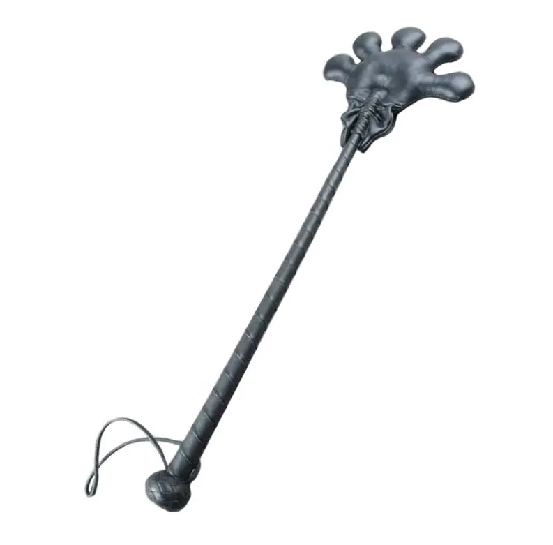 Стек "Мульти-Пульти" от российского бренда Beastly сделан из натуральной кожи черного цвета, а на ручке в виде витого стержня есть петелька для фиксации и ограничитель-бобышка. Шлепок стилизован под мультяшную ладошку в перчатке, чей необычный дизайн шлепка добавит в игры с элементами БДСМ особой остроты и возбуждающего ожидания каждого удара. Наносите стеком чувствительные удары по коже, которые будут сопровождаться звонкими шлепками, после которых кожа будет гореть приятным огнем.