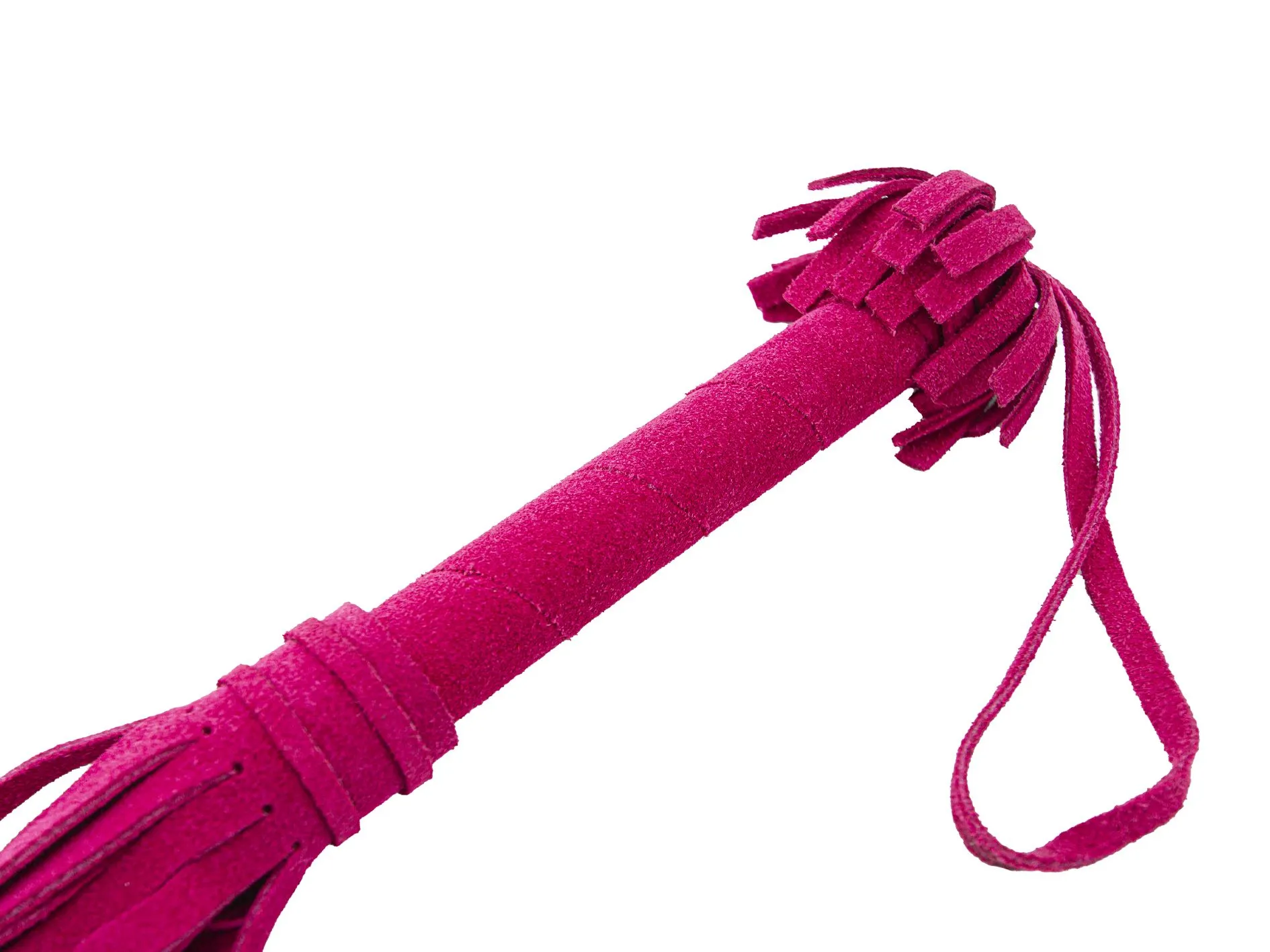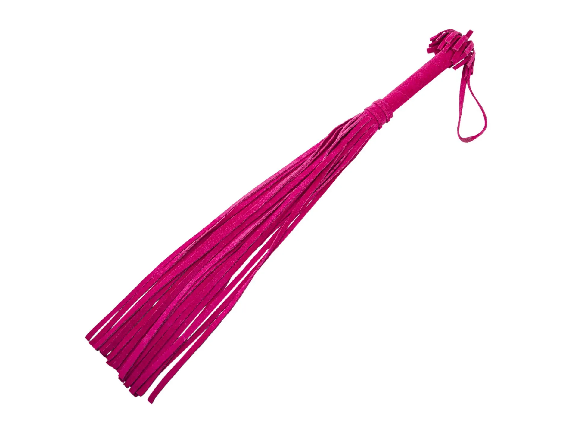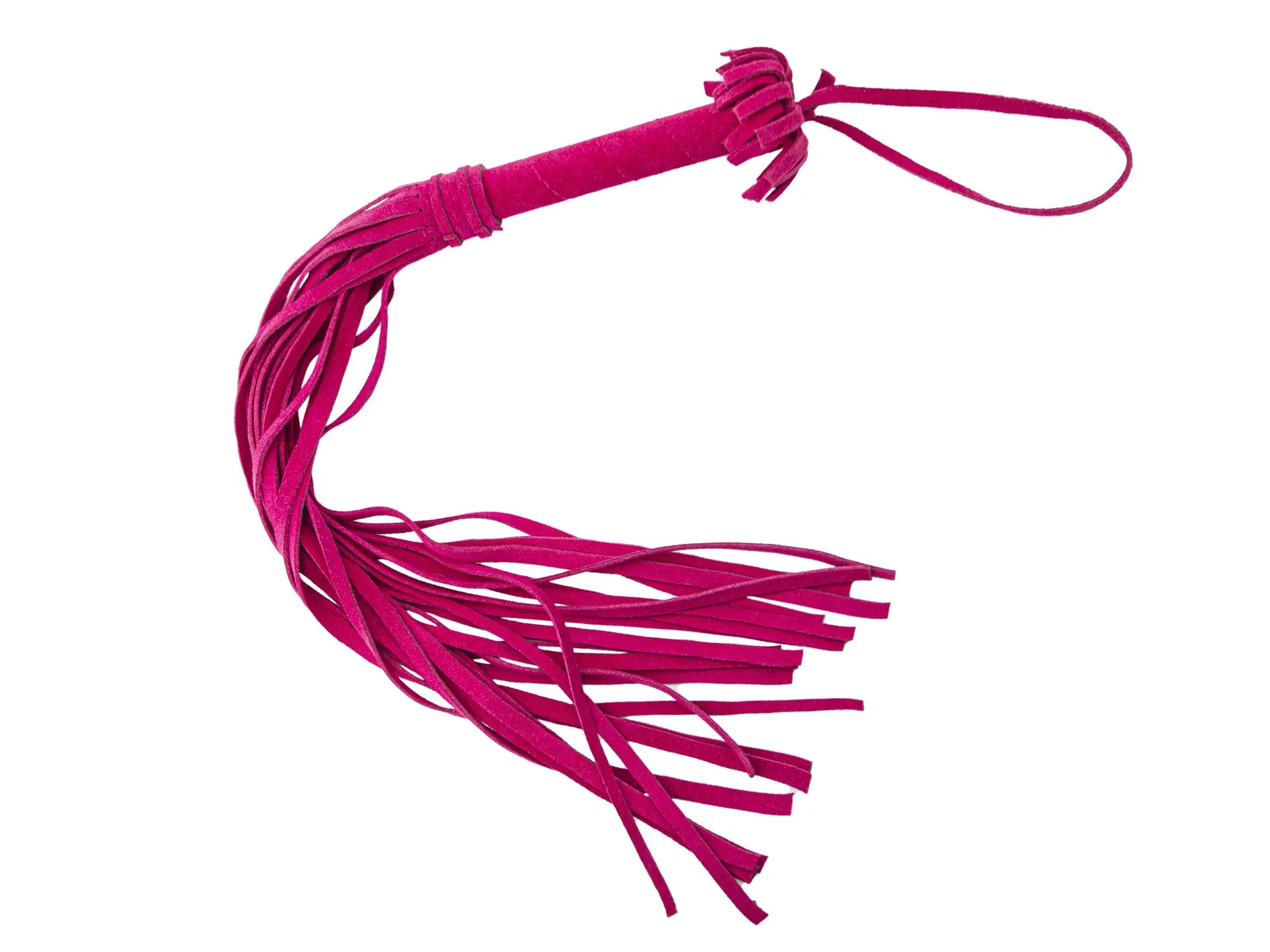 Эта плеть в ярком розовом цвете понравится тем, кто хочет попробовать что-то новое и не боится острых ощущений. С помощью этого аксессуара Вы сможете раздразнить партнера легкими ударами перед началом любовной игры или, наоборот, наказать его более ощутимыми ударами. Плеть выполнена из качественной велюровой кожи и состоит из жесткой рукояти и 22 хвостов шириной 1 см. Длина рукояти составляет 10 см, она украшена бахромой, а также имеет удобную петельку для ношения плети на запястье.