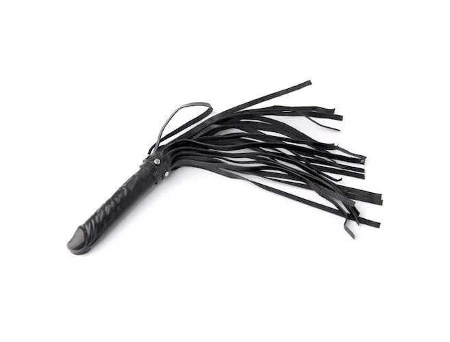 Ударная часть плети выполнена из натуральной кожи, а рукоять в форме фаллоса - из натурального гипоаллергенного латекса. Общая длина плети - 50 см.