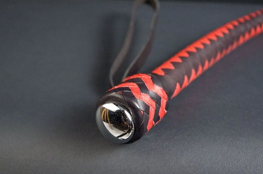 Короткий кнут "Ответный выпад" с 8 хвостами от бренда Beastly добавит острых ощущений в интимную жизнь пары. Такой аксессуар пригодится во время ролевых игр с элементами БДСМ, когда Вы хотите наказать своего партнера и преподать ему урок послушания. Кнут сделан из натуральной кожи черного и красного цветов, у него есть гибкая плетеная ручка, переходящая в кнутовище для руки в виде цилиндра с навершием и петлей для фиксации. Плетение восьмиполосное "елочкой" с узелком и кисточкой на конце, которую можно будет применять как для нанесения ударов, так и для дразнящих поглаживаний.