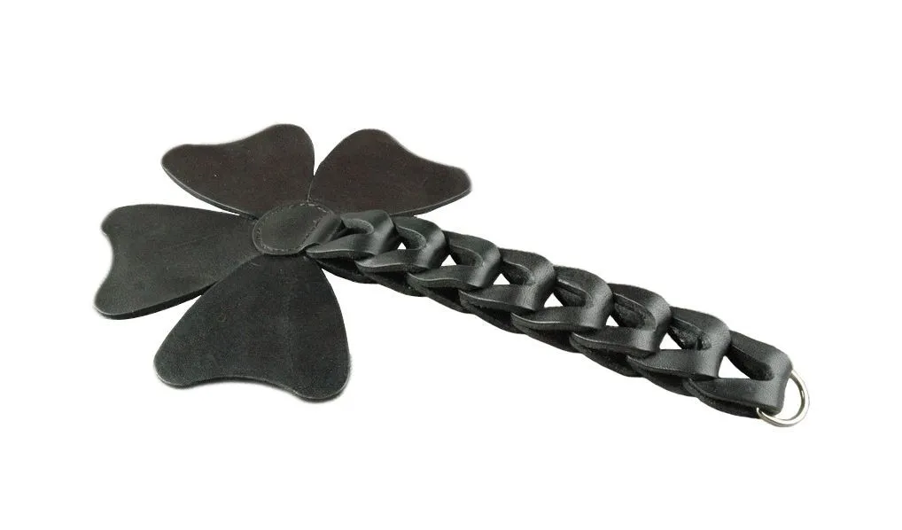 Шлепалка "Четырехлистник" от бренда Beastly сделана из натуральной кожи черного цвета в оригинальном дизайне в виде листа клевера. Четыре ее лепестка закреплены на ручке из 8 кожаных звеньев. Наносите ей чувствительные удары по ягодицам или бедрам, которые будут сопровождаться звонкими и возбуждающими шлепками. После наказания кожа еще долго будет гореть огнем, напоминая о мучительном, но вместе с тем сладком удовольствии.