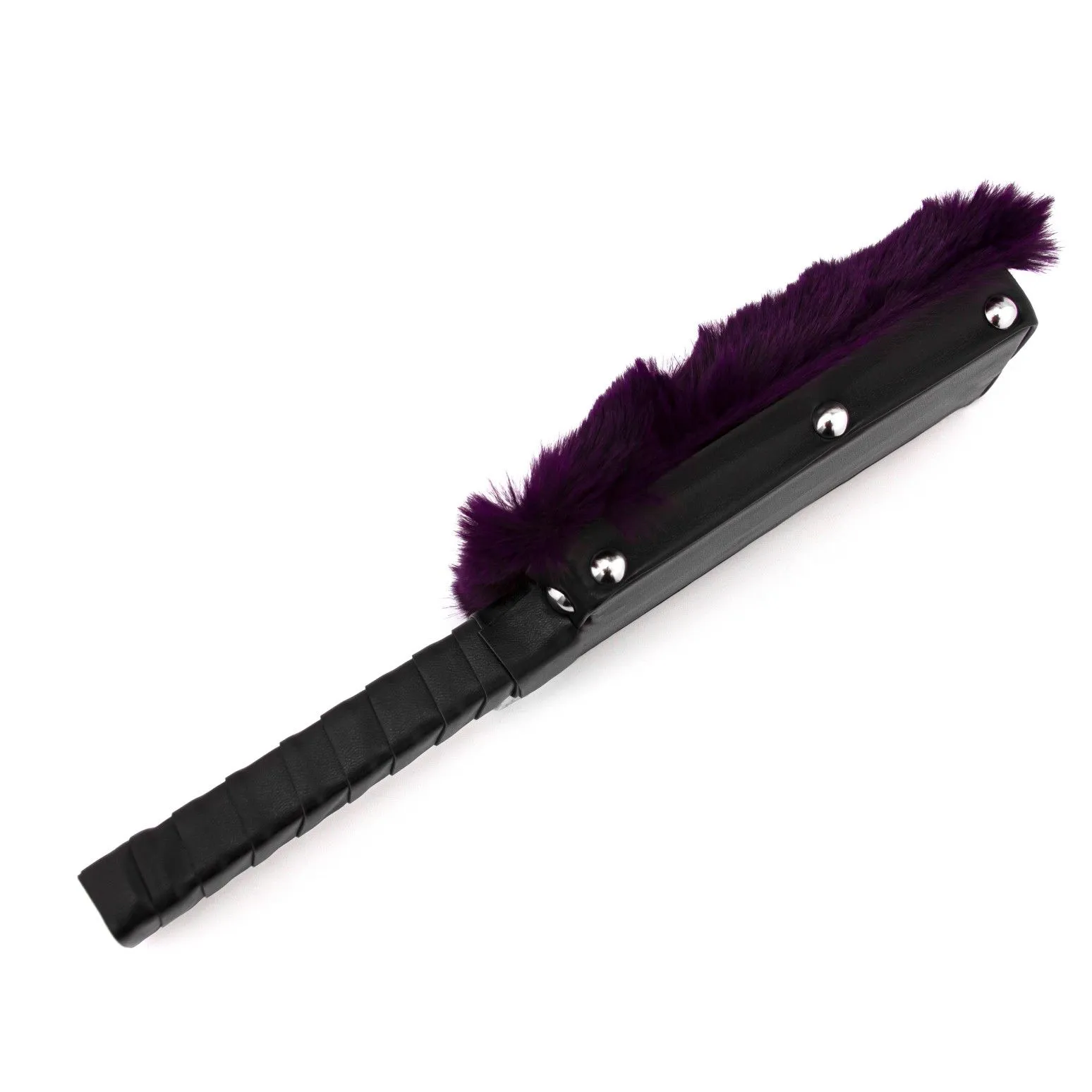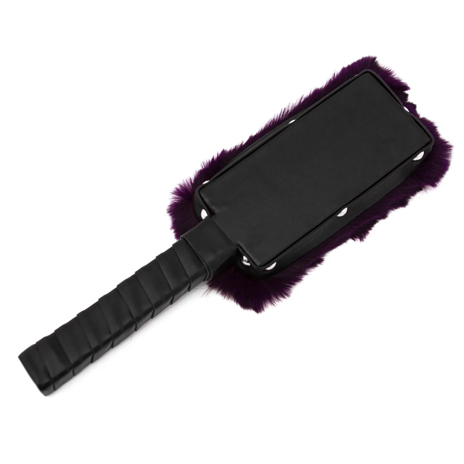 Эта шлепалка представляет собой твердый паддл, выполненный из натуральной кожи черного цвета с одной стороны, а другая сторона покрыта фиолетовым мягким искусственным мехом. С таким девайсом Ваши любовные игры приобретут оттенок БДСМ, станут более страстными и яркими. Отшлепайте своего партнера, нанося ощутимые удары твёрдой стороной, чтобы показать ему его место и заставить повиноваться. Или же поощрите его нежными поглаживаниями мягим мехом за хорошее поведение. На ручке имеется кожаная петелька для запястья, благодаря которой паддл не выскользнет из Ваших рук. Длина 30 см вместе с ручкой.