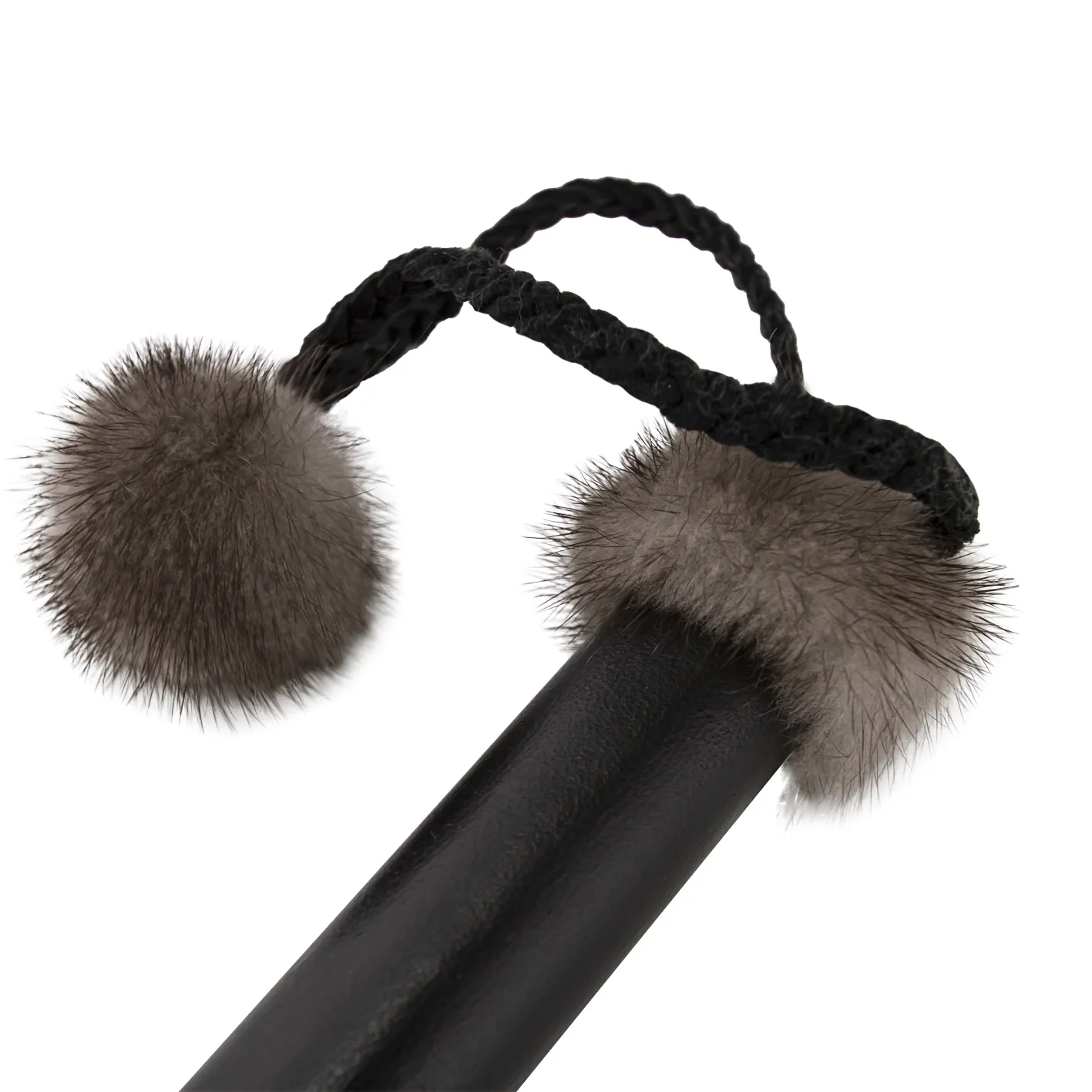 Идеальный вариант для мягких наказаний. За счёт материала овечьей кожи, плетка не приносит сильных болевых ощущений, даже при значительном ударе. Обтянута натуральной мягкой кожей, на краях мех норки. На ручке меховой помпон, который делает дизайн плётки более игривым. Упаковывается в специальный деревянный футляр.